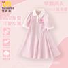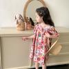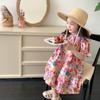 Aimo Beibei Vestido Holgado Tipo A para Niñas Verano Nuevo Vestido de Princesa Floral Pintura al Óleo