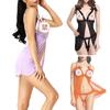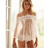 Lencería sexy europea y americana, uniforme tentador, perspectiva femenina, vestido de gasa blanca con hombros descubiertos y encaje, pijama de dormir.