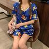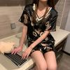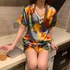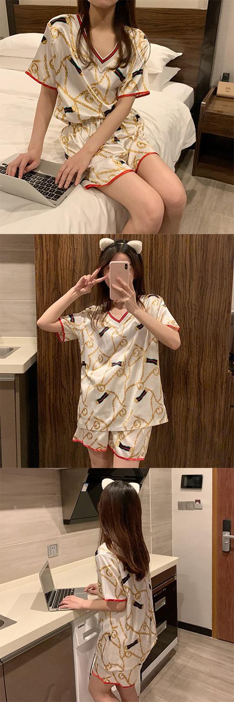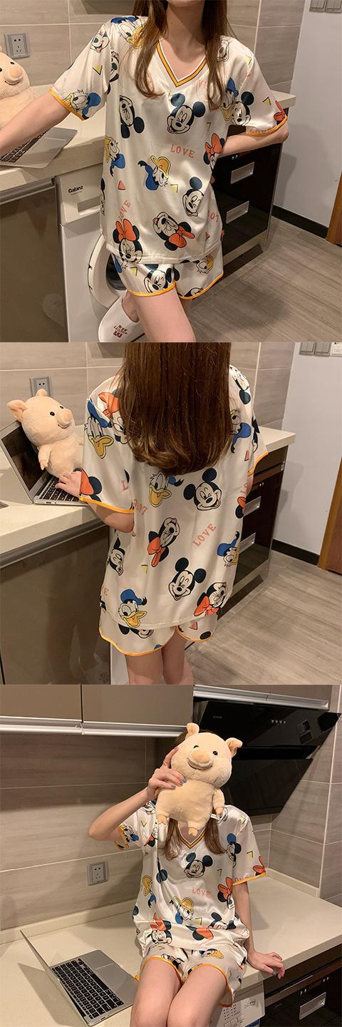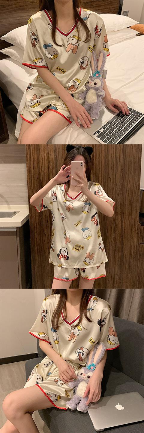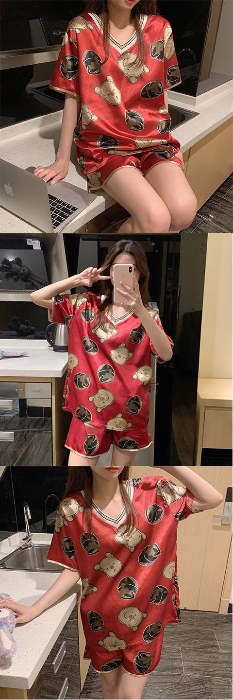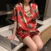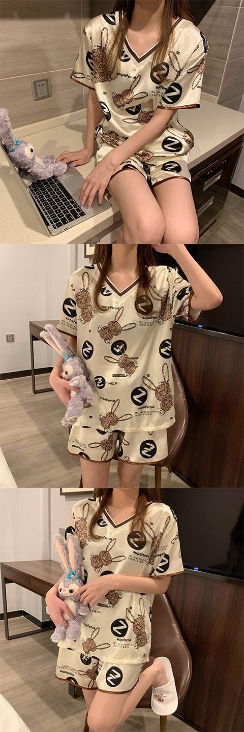 Pijama de Seda de Hielo para Mujer Verano 2024 Nuevo Manga Corta Shorts Delgado Seda Simulada Jersey Ropa de Casa Cuello en V Traje