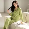 Pantalones de manga larga de satén de seda de hielo para hombre de Han Yatong, traje de primavera y verano de color sólido para el hogar, pijamas de otoño para mujer Nuevo