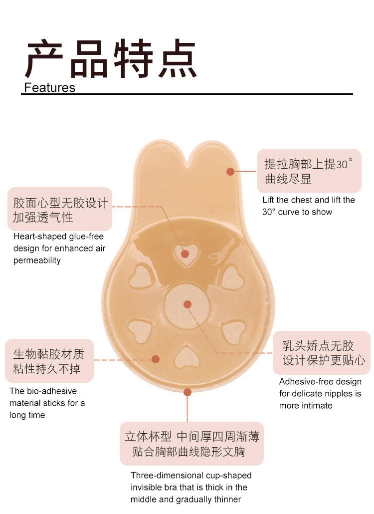 Compra Parche de pecho antigolpes de tela con diseño de orejas de conejo, parche de pecho de algodón, silicona, transpirable, antiluz, invisible, al por mayor al por mayor en Joom.pro