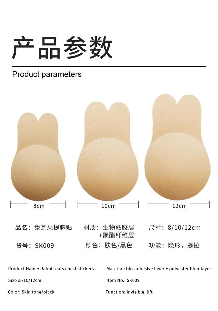 Parche de pecho antigolpes de tela con diseño de orejas de conejo, parche de pecho de algodón, silicona, transpirable, antiluz, invisible, al por mayor