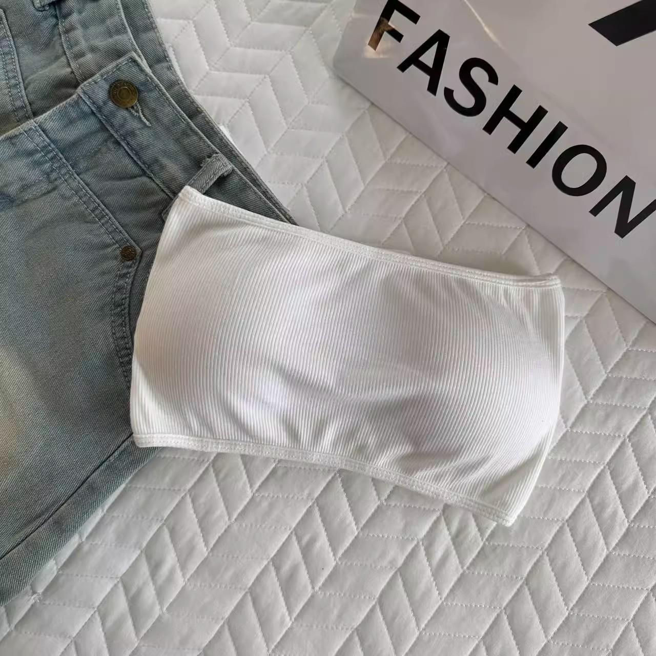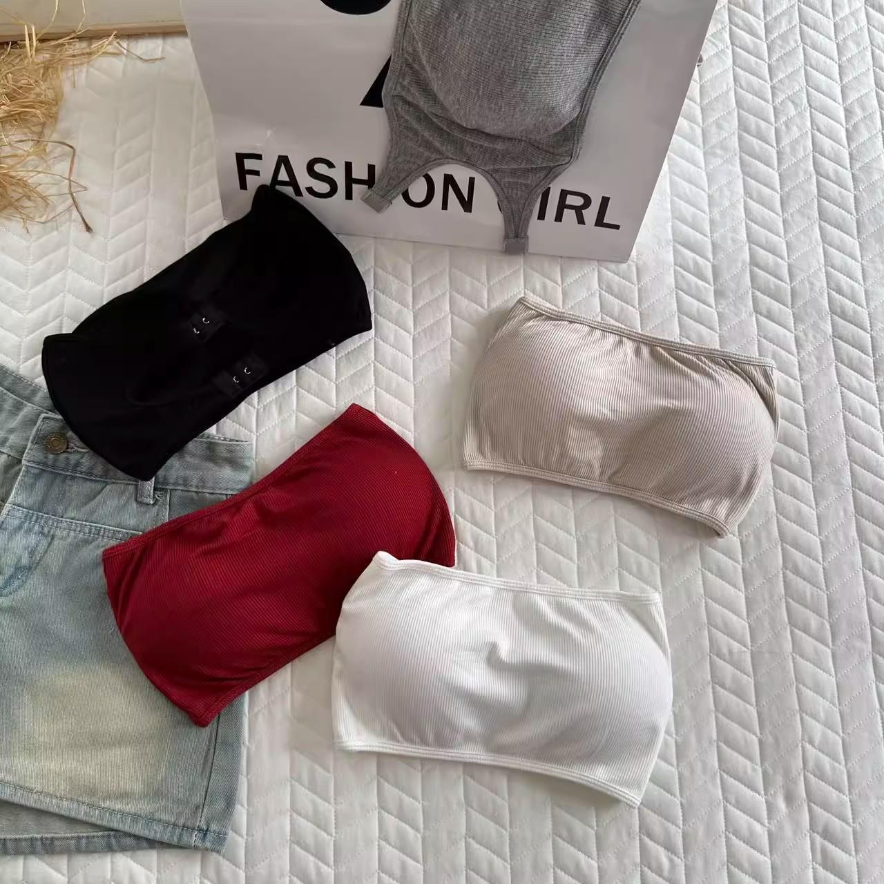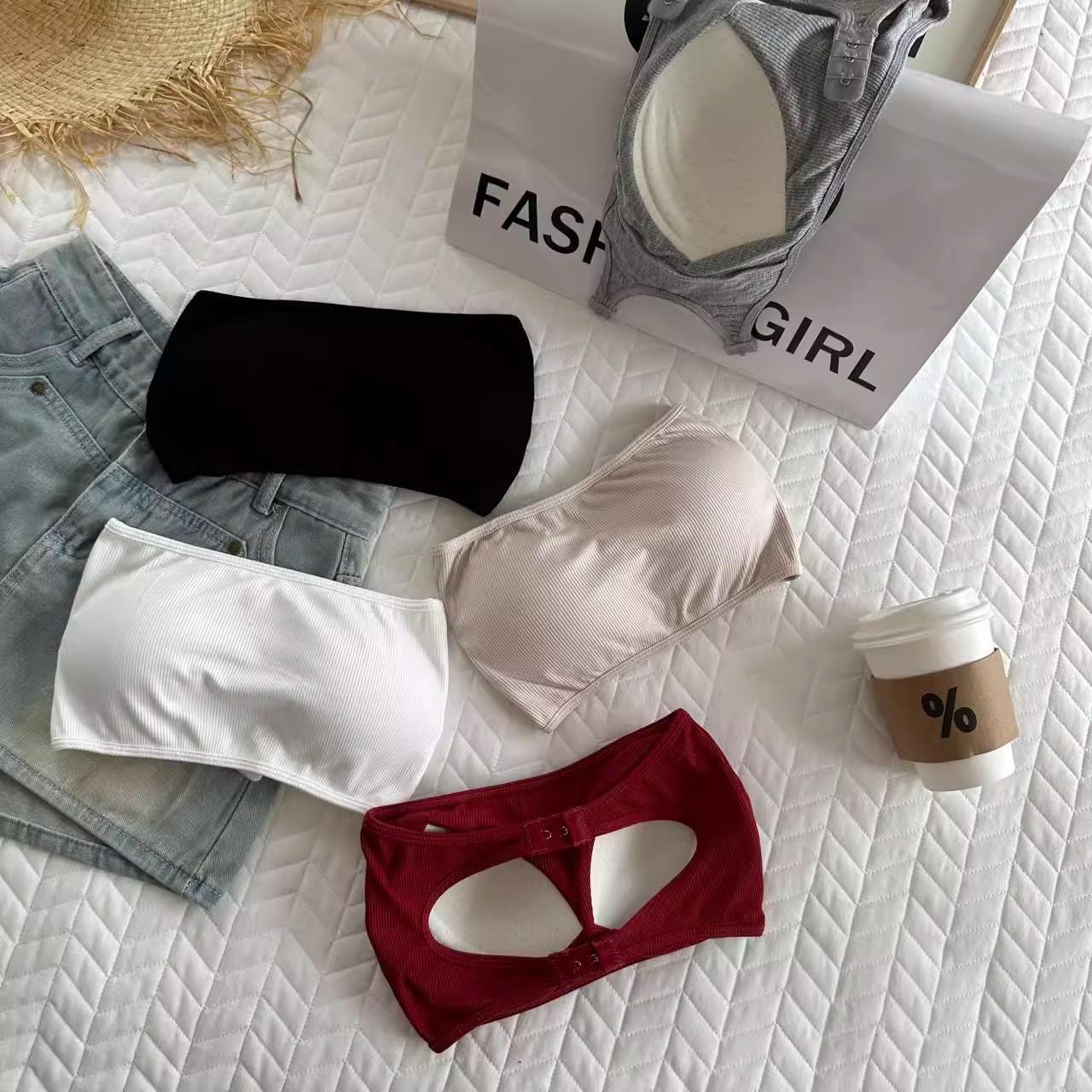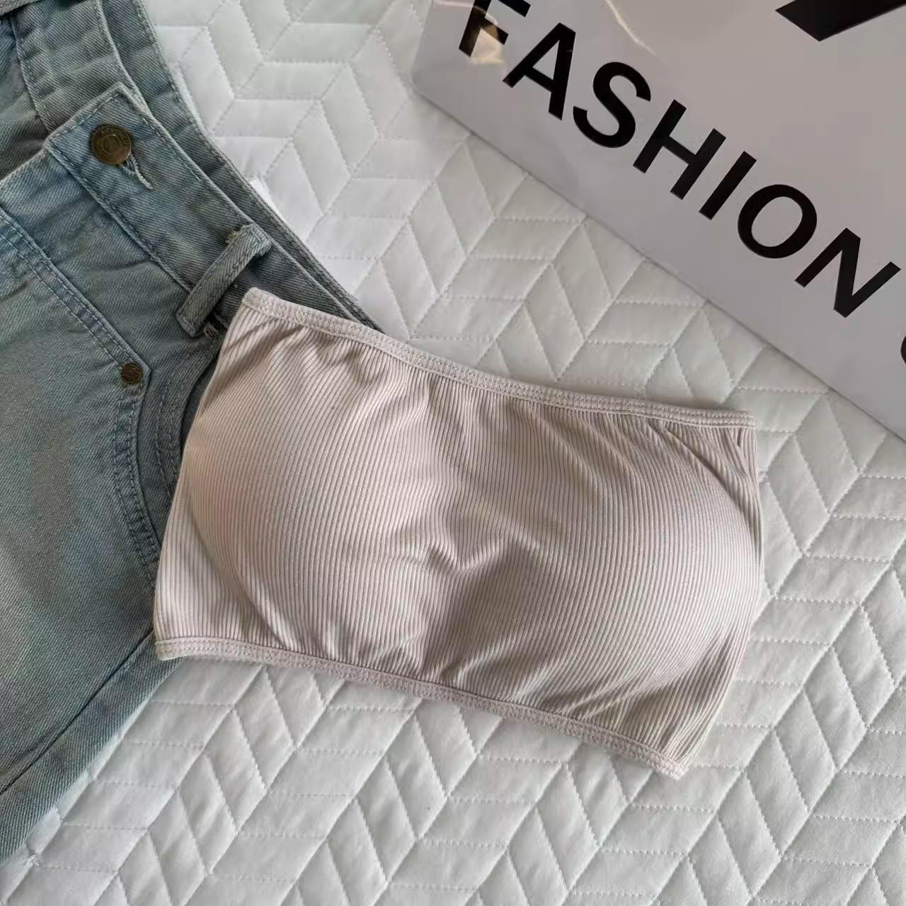 Nuevo top de tubo de una palabra con copa fija con almohadilla en el pecho, sujetador sexy interior básico anti-exposición, ropa interior de belleza para la espalda para mujer