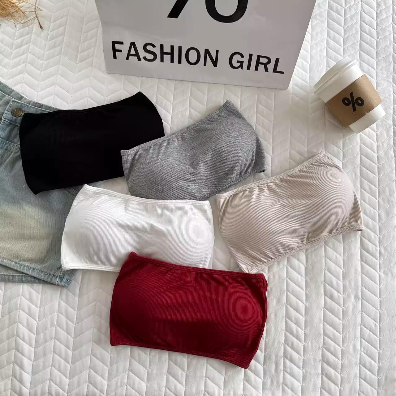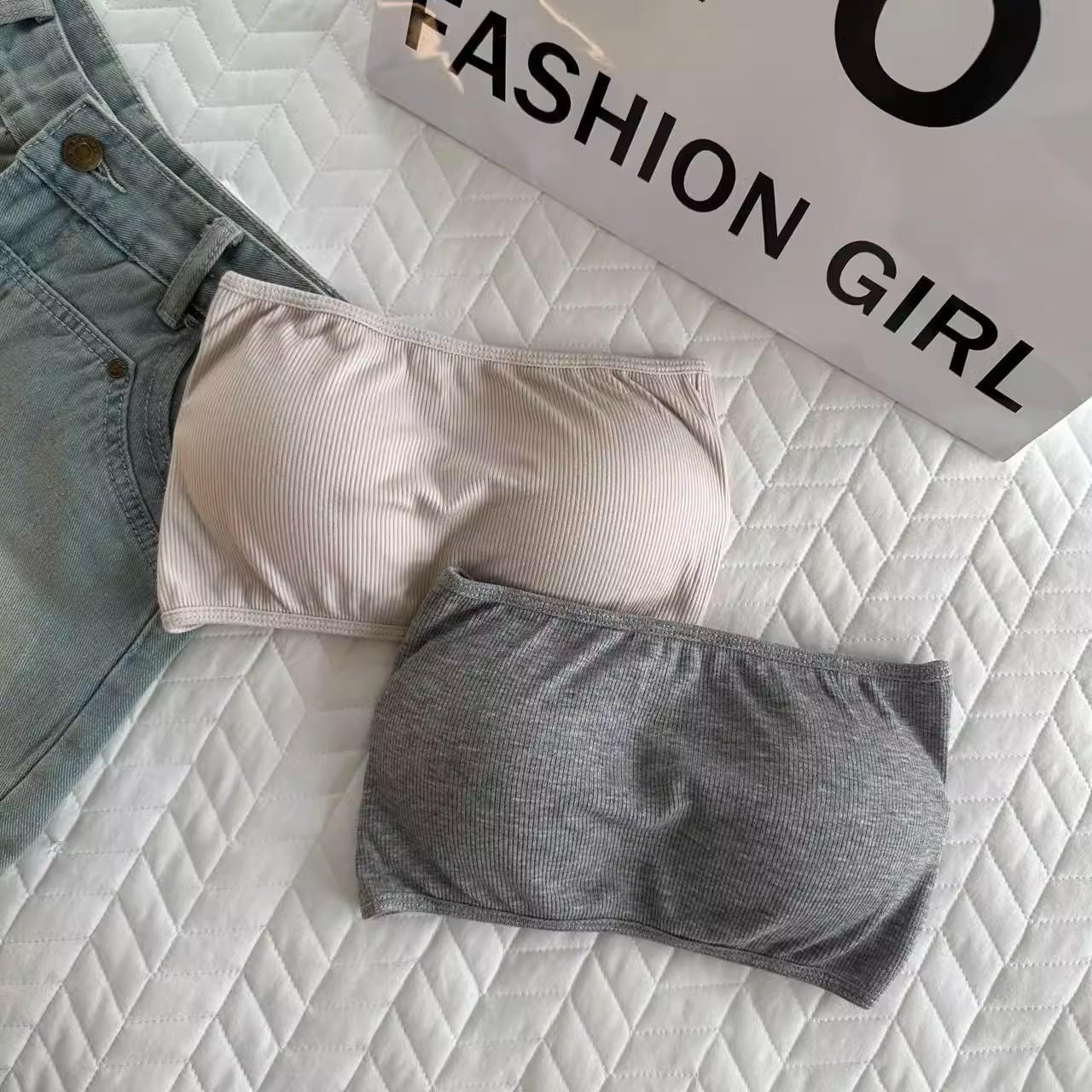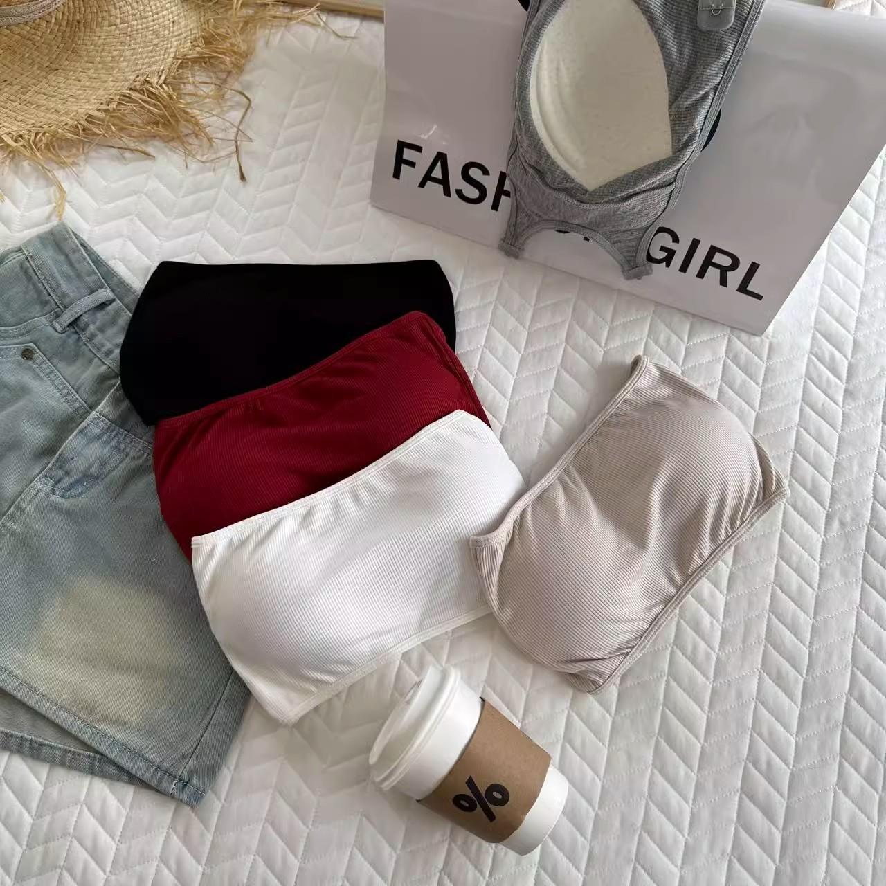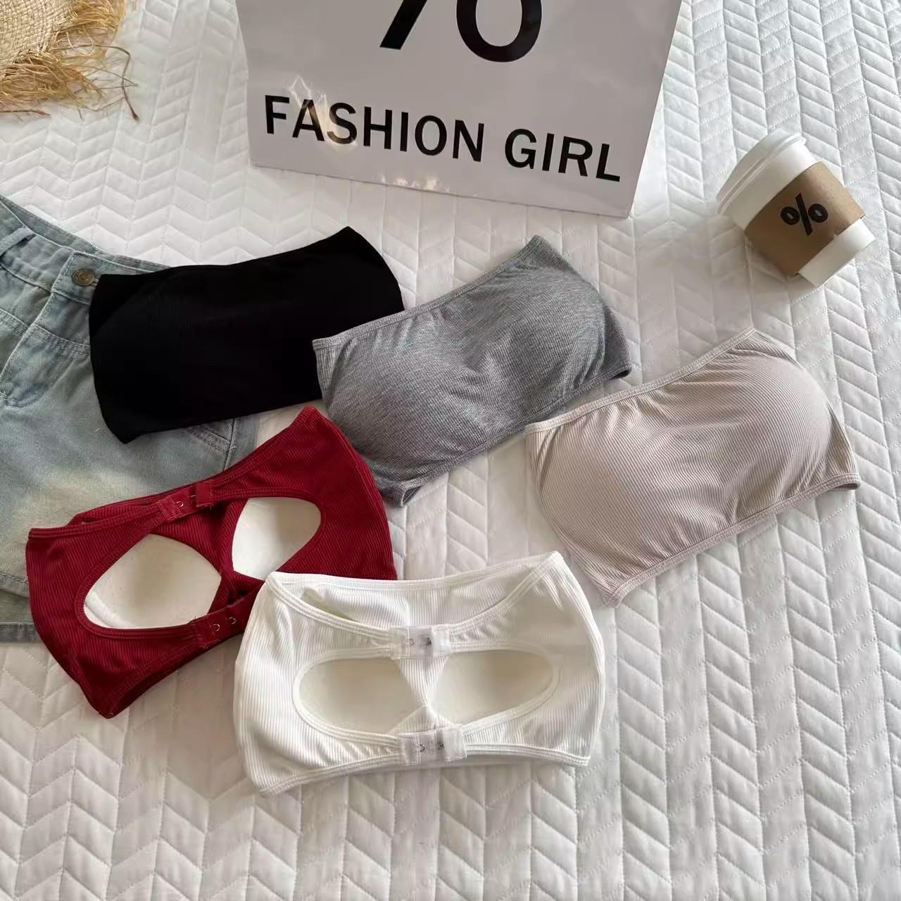 Nuevo top de tubo de una palabra con copa fija con almohadilla en el pecho, sujetador sexy interior básico anti-exposición, ropa interior de belleza para la espalda para mujer