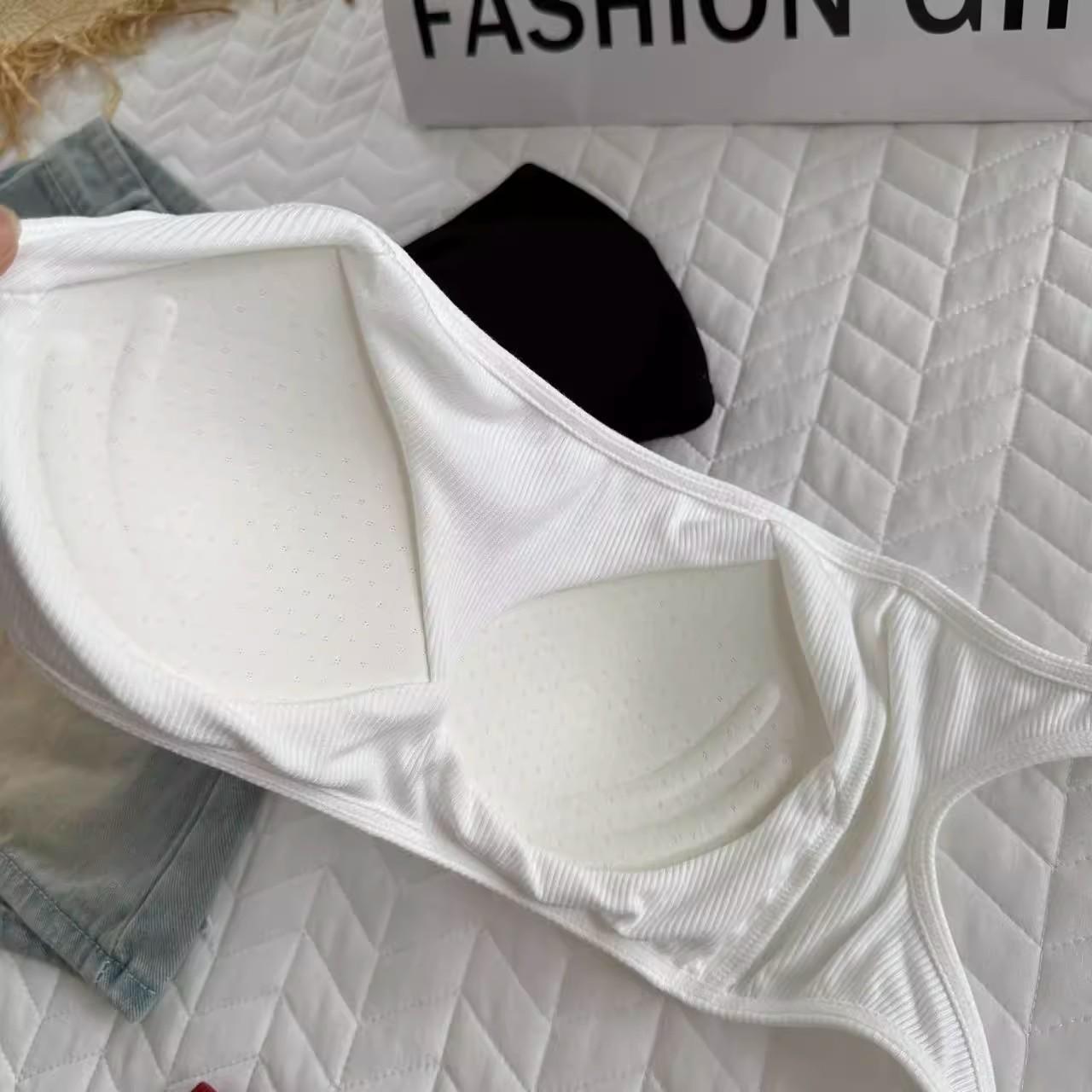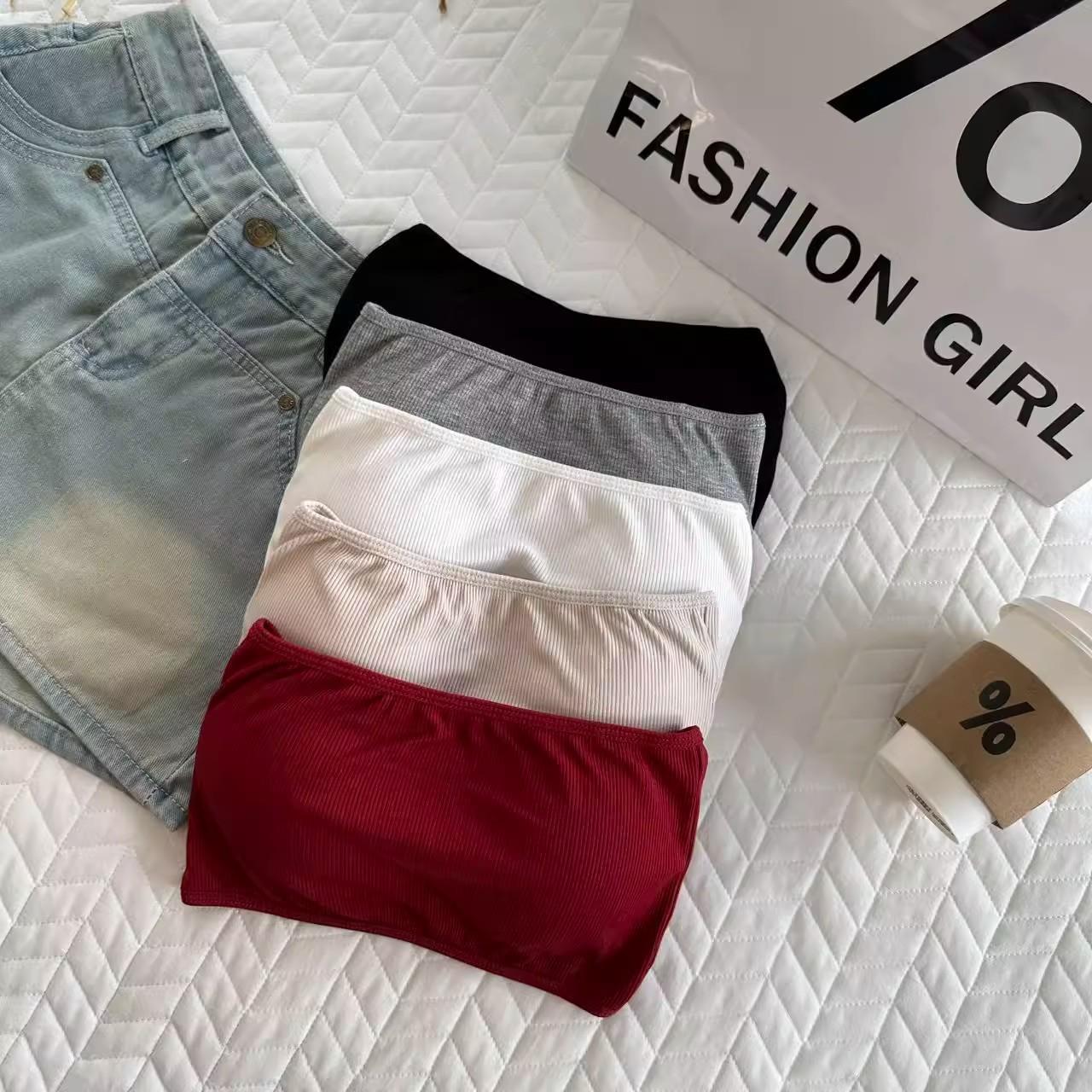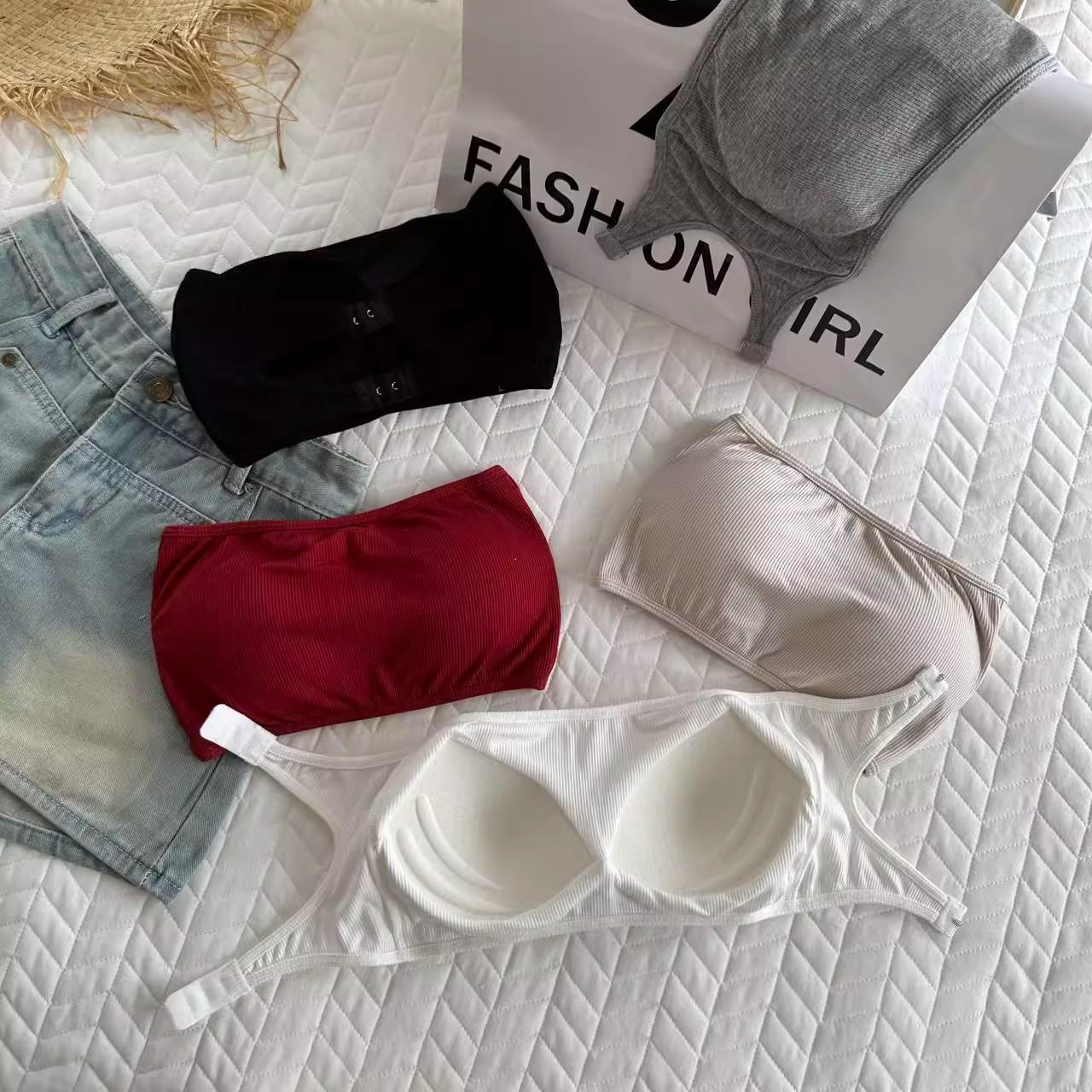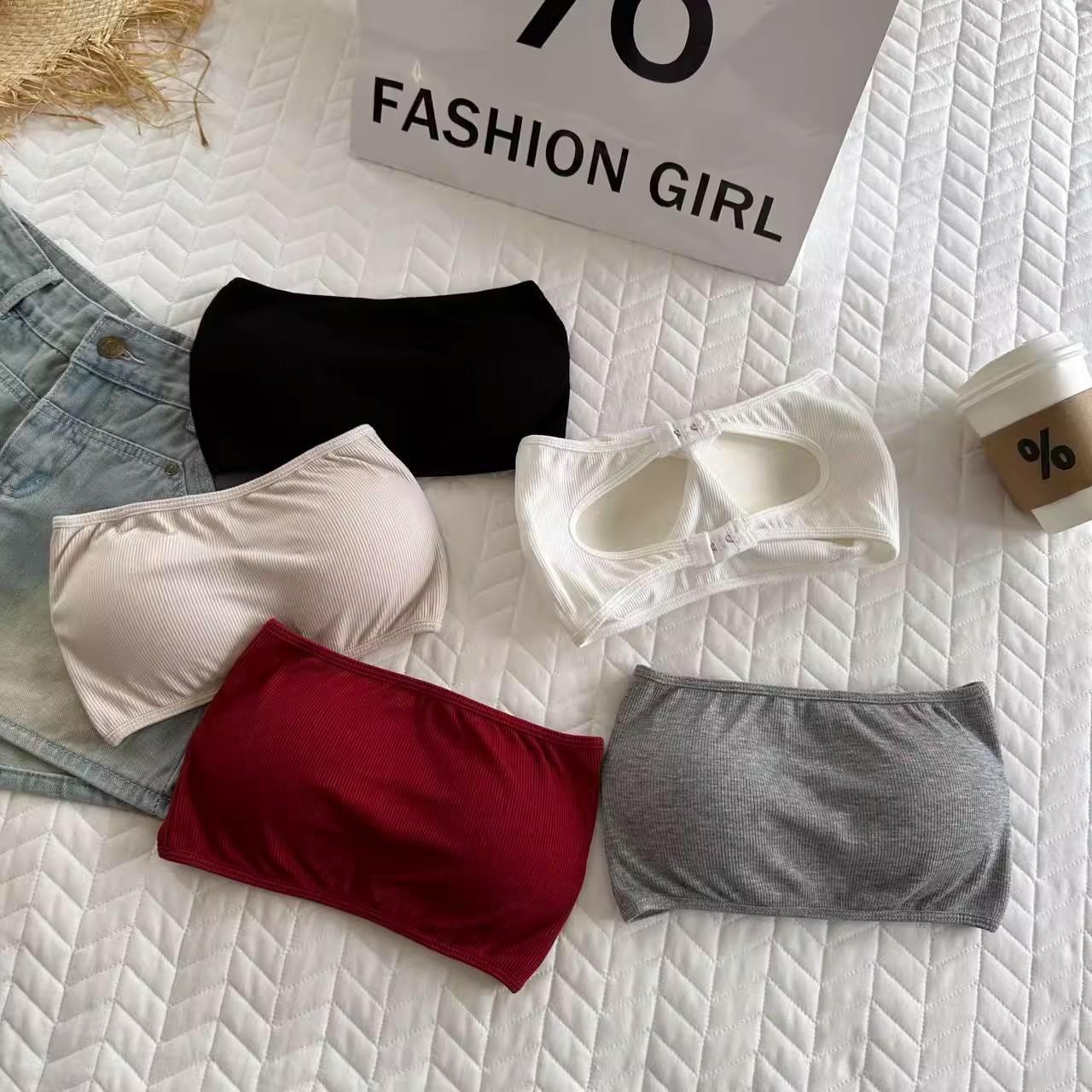 Nuevo top de tubo de una palabra con copa fija con almohadilla en el pecho, sujetador sexy interior básico anti-exposición, ropa interior de belleza para la espalda para mujer