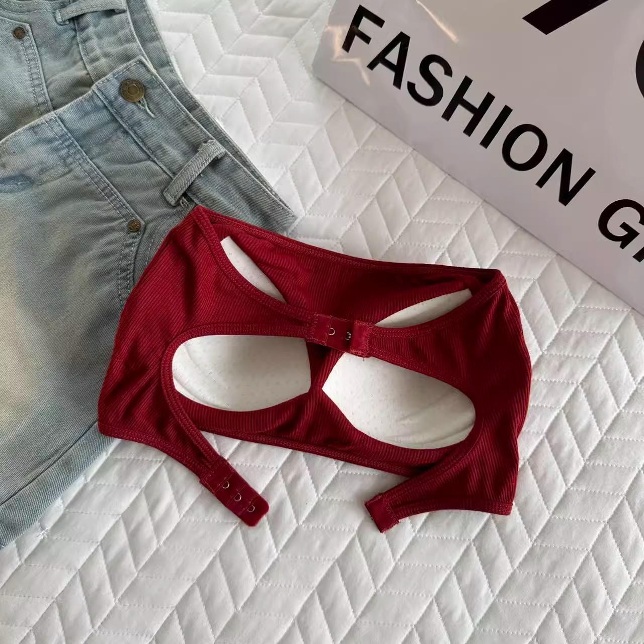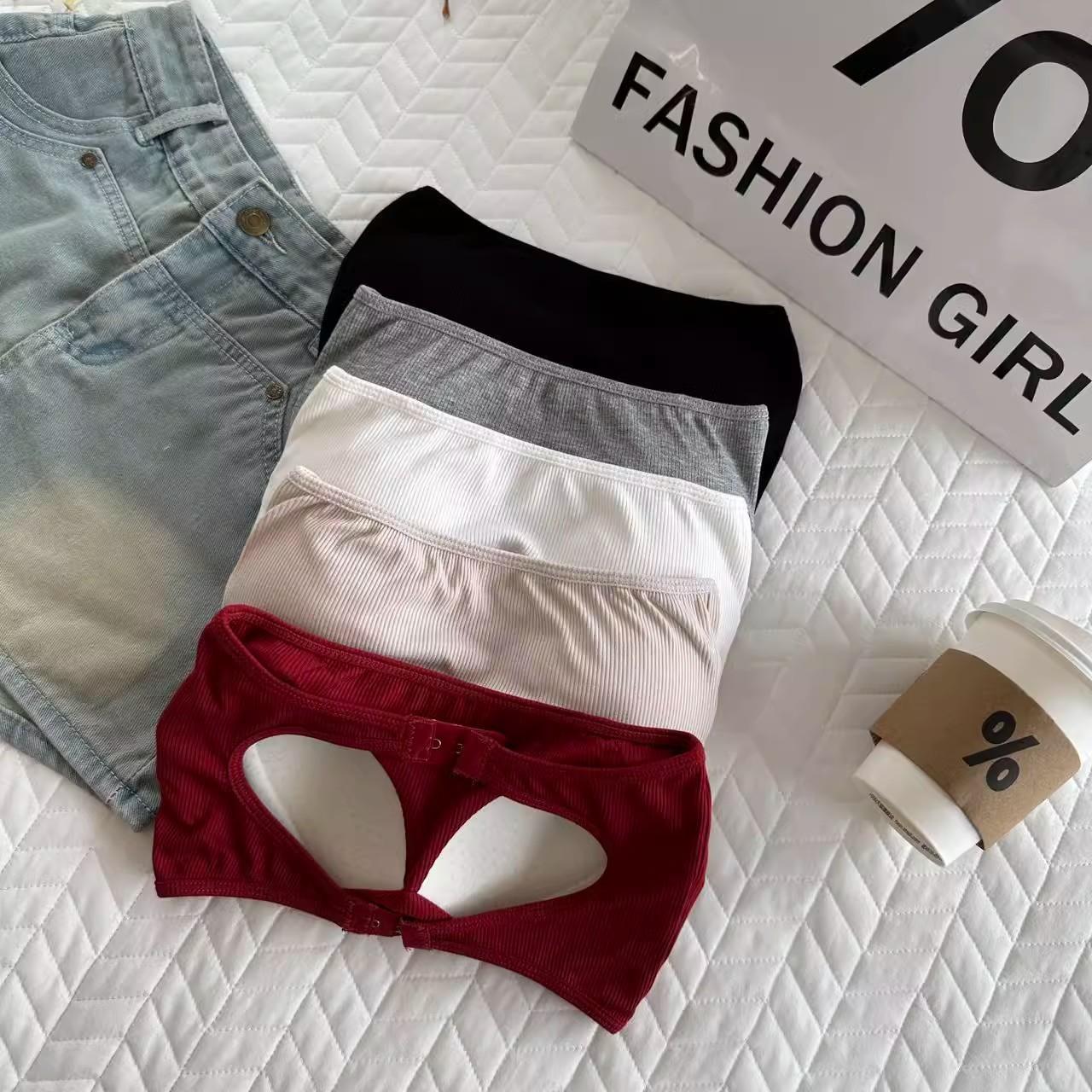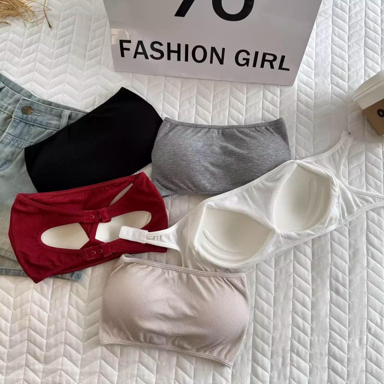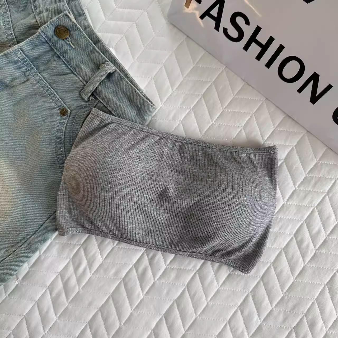 Nuevo top de tubo de una palabra con copa fija con almohadilla en el pecho, sujetador sexy interior básico anti-exposición, ropa interior de belleza para la espalda para mujer