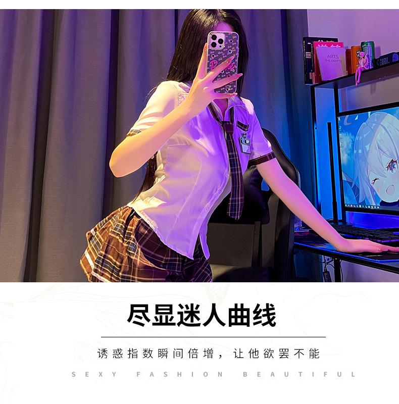 Lencería sexy, ropa de estudiante sexy, uniforme JK de talla grande, juego de rol seductor, pasión caliente, traje de falda plisada