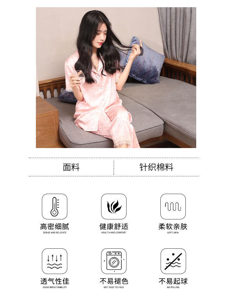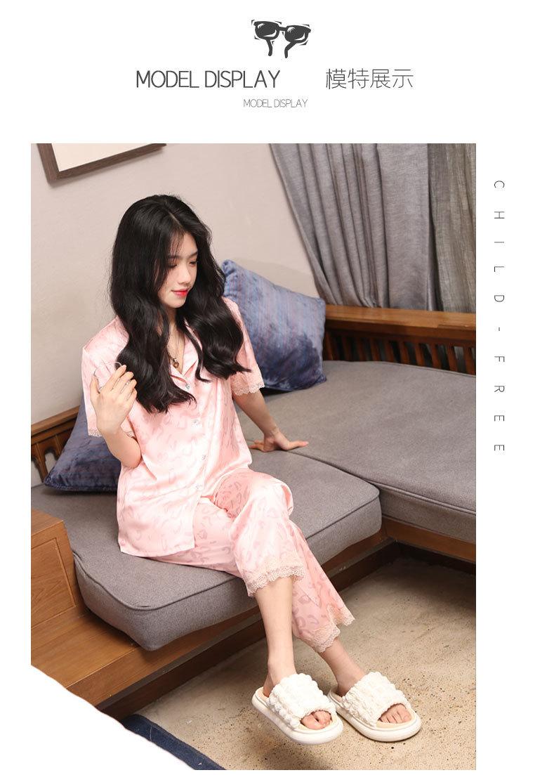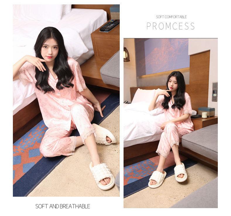 Pijamas de mujer 2023 nuevos pijamas cortos de seda de hielo de verano para mujer, manga rosa para niña, ropa de casa fina para exteriores
