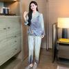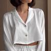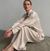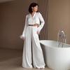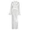 2025 Otoño Europeo y Americano Simple Casual Satén Blanco Pluma Pijama Conjunto de Dos Piezas Pantalón Manga Larga Ropa de Casa para Mujer