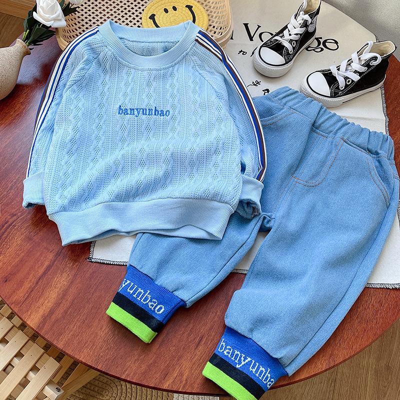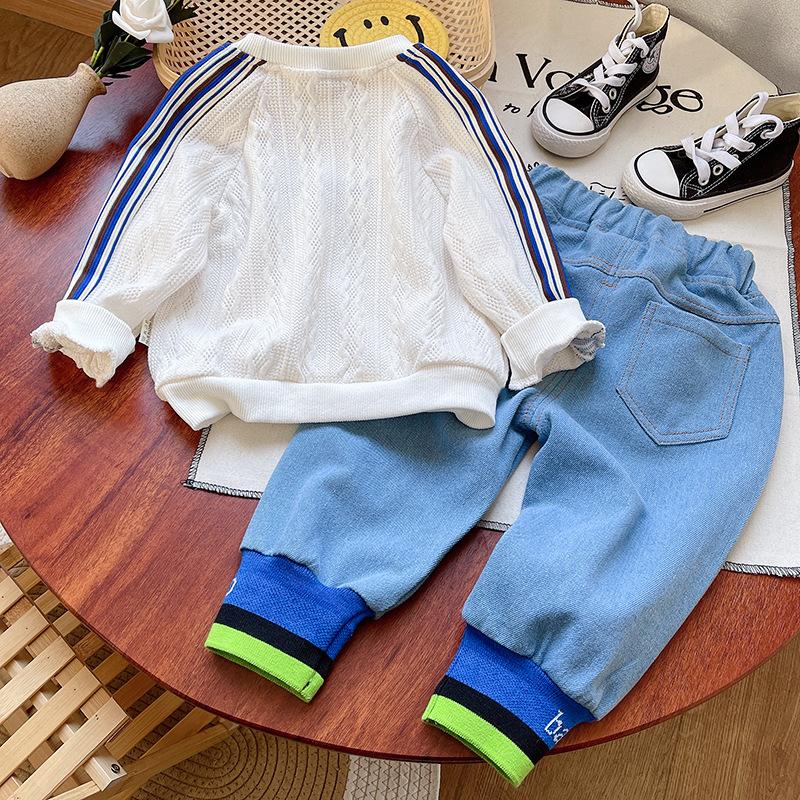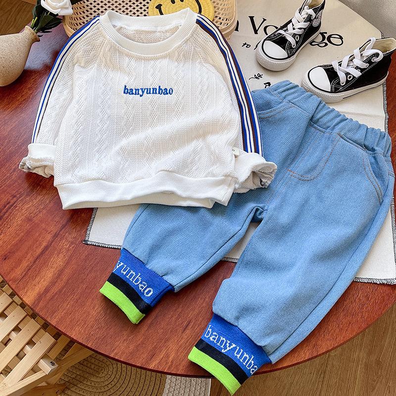 Conjunto de dos piezas de ropa infantil de estilo coreano de primavera 2023, suéter a juego de colores para bebés, traje de color sólido para niños