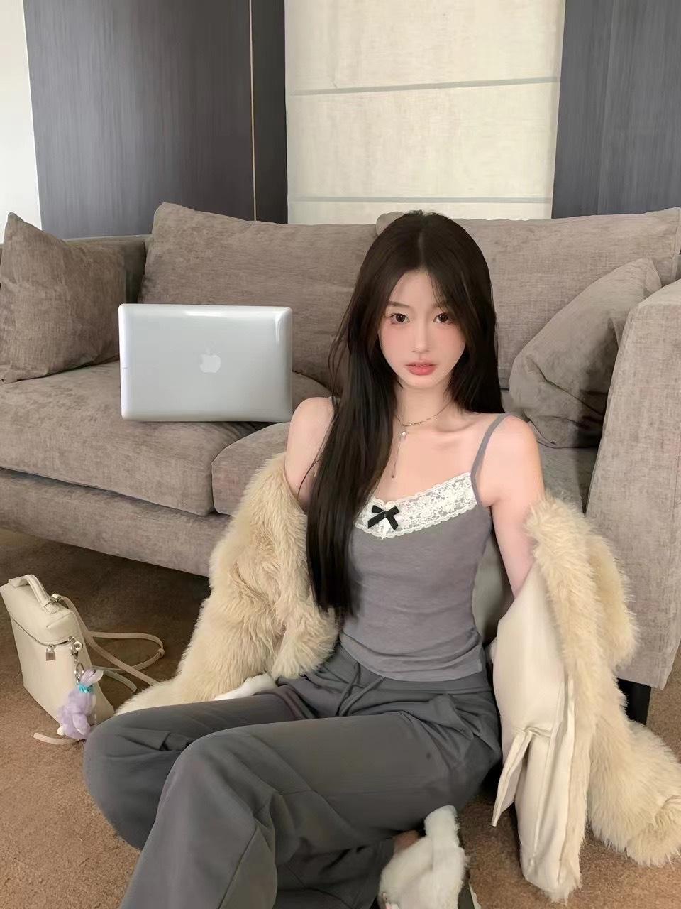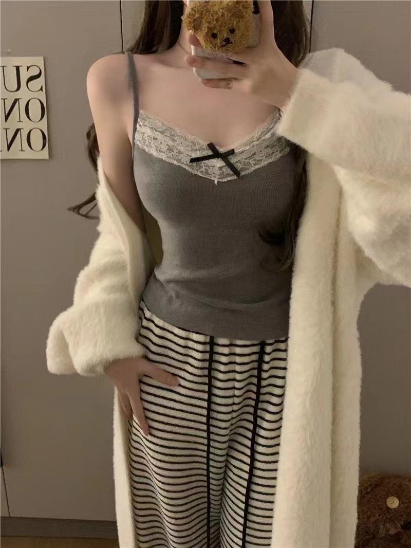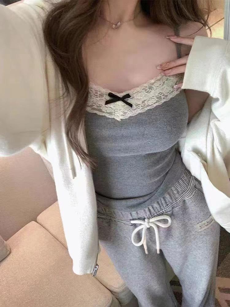 Sujetador de mujer con tiras de encaje y almohadilla para el pecho, cinturón de viento puro integrado, almohadilla para el pecho, escote en V, parte inferior que combina con todo, chaleco interior y exterior