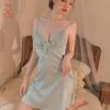Pijama de verano para mujer, estilo francés, blanco, fino, elegante, con escote en V, de seda, con encaje, sexy, cruzado, para el hogar