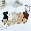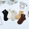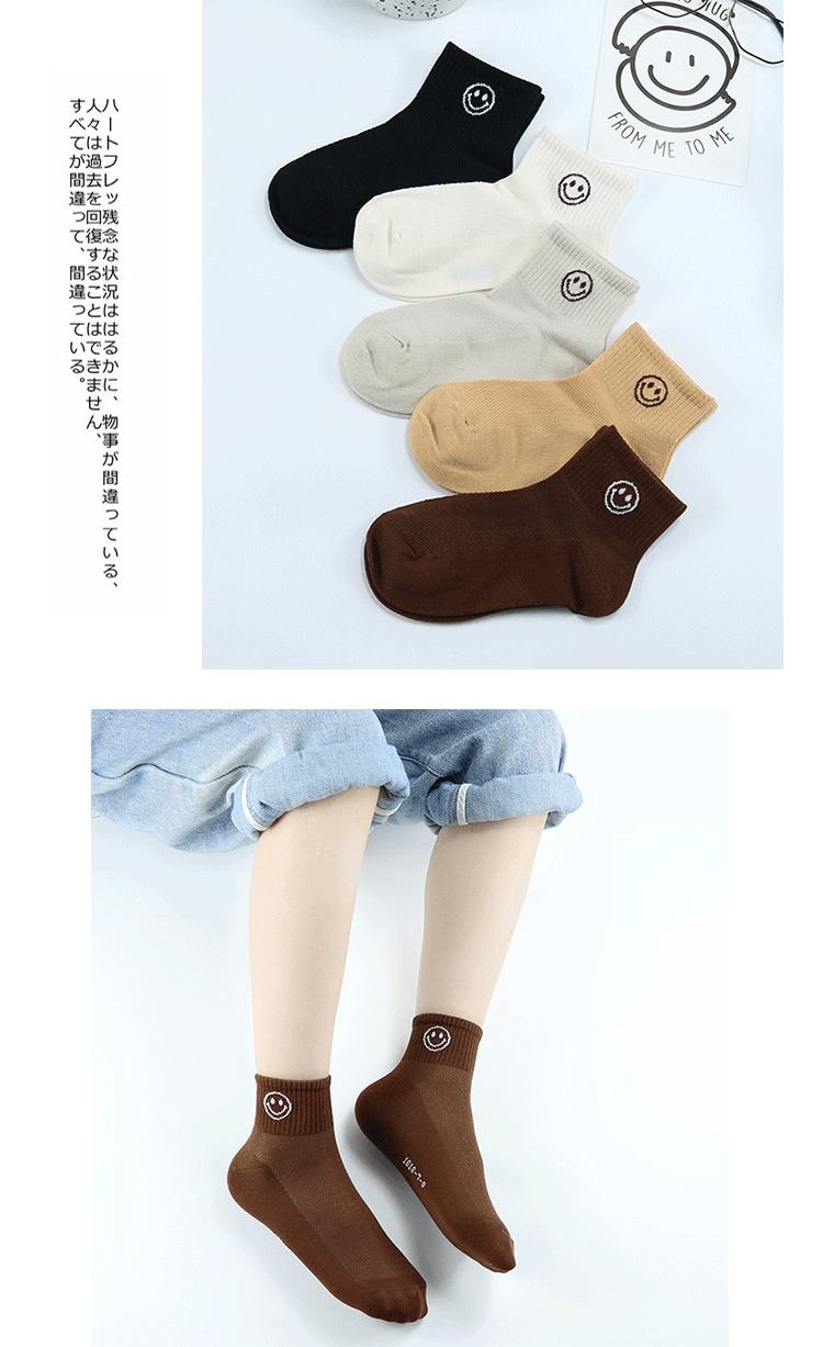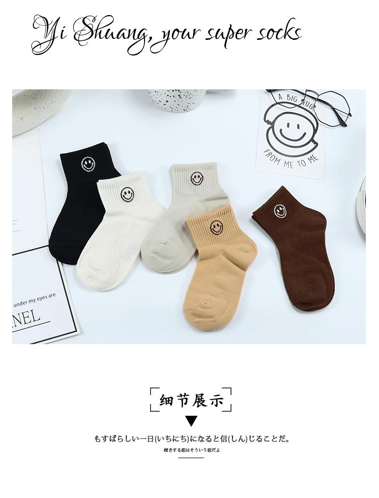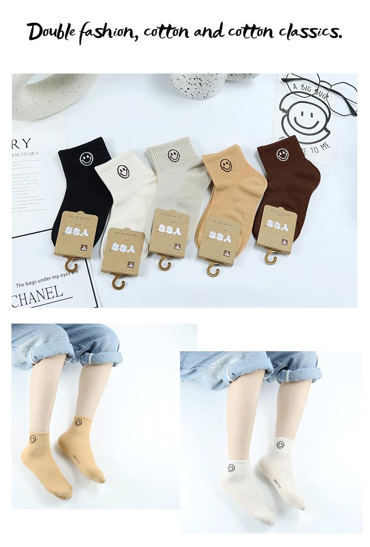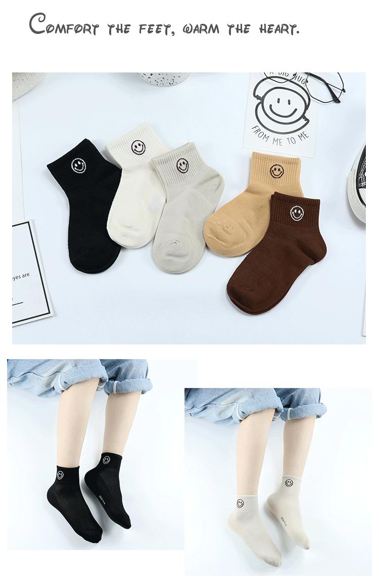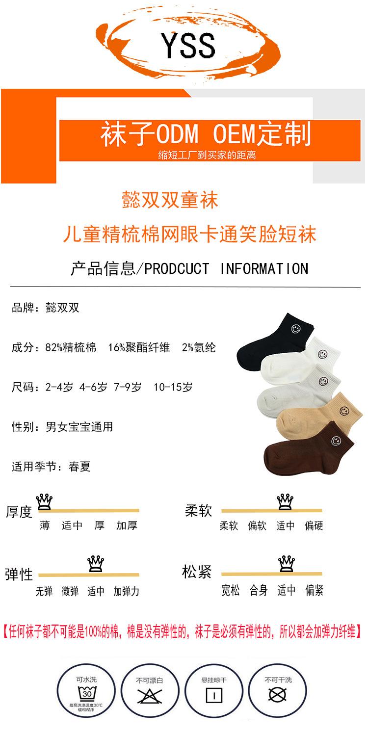 Yi Pair - Calcetines para niños de verano, nuevos, de malla transpirable, con dibujos animados de carita sonriente, calcetines cortos de algodón peinado, calcetines deportivos grandes para niños.