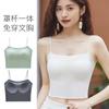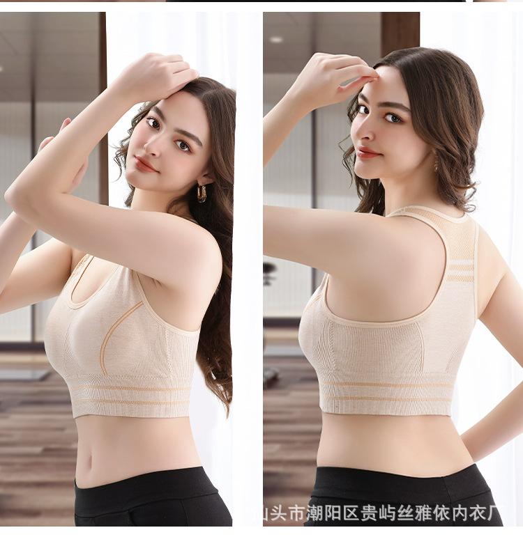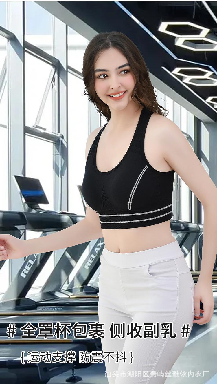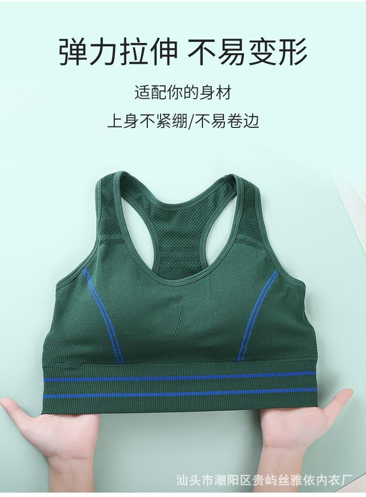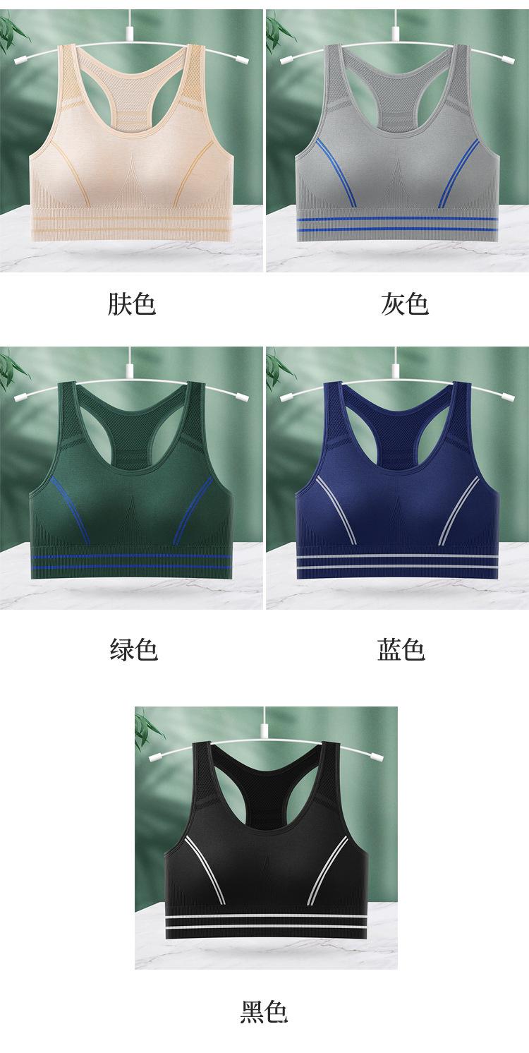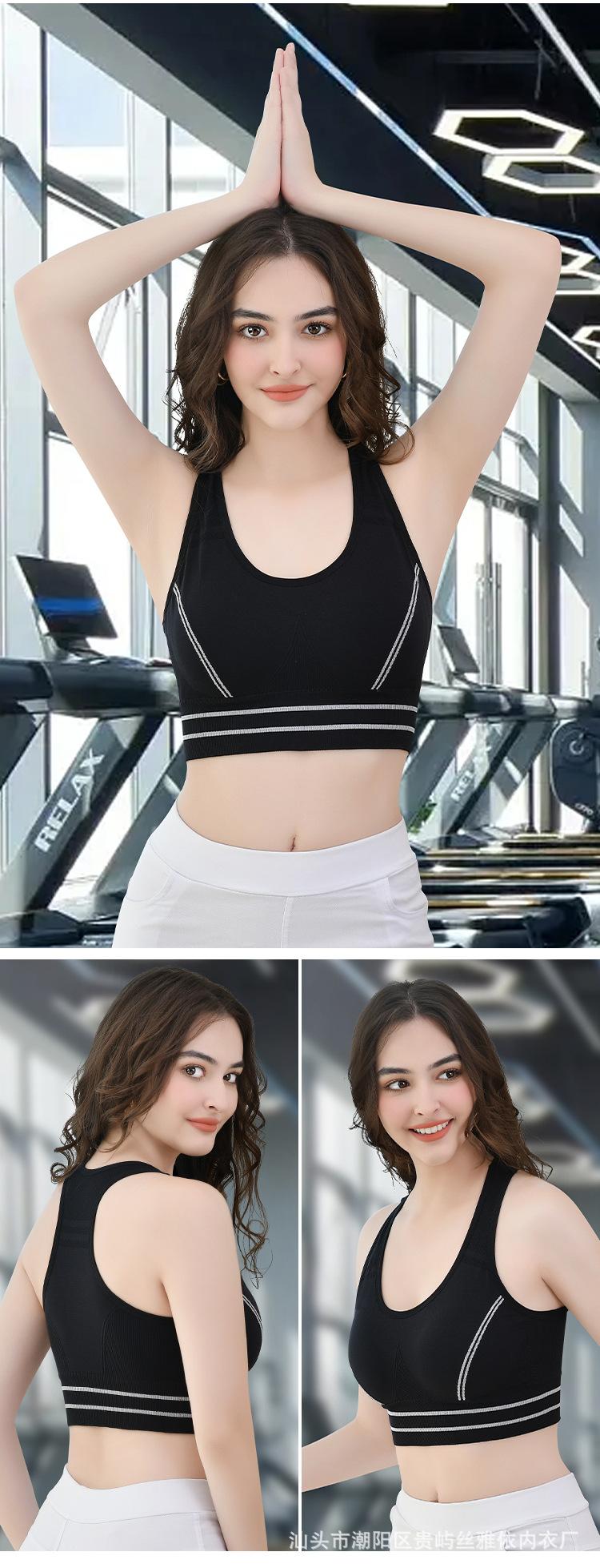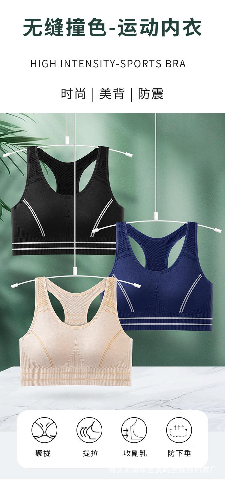 Sujetador deportivo inalámbrico de una pieza con copa fija y parte superior de tubo con pecho en forma de I, con contraste de colores sin costuras y espalda envuelta, talla grande para mujer