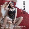 Black [conjoined vest underwear garter * 4 "three-dimensional black net stockings