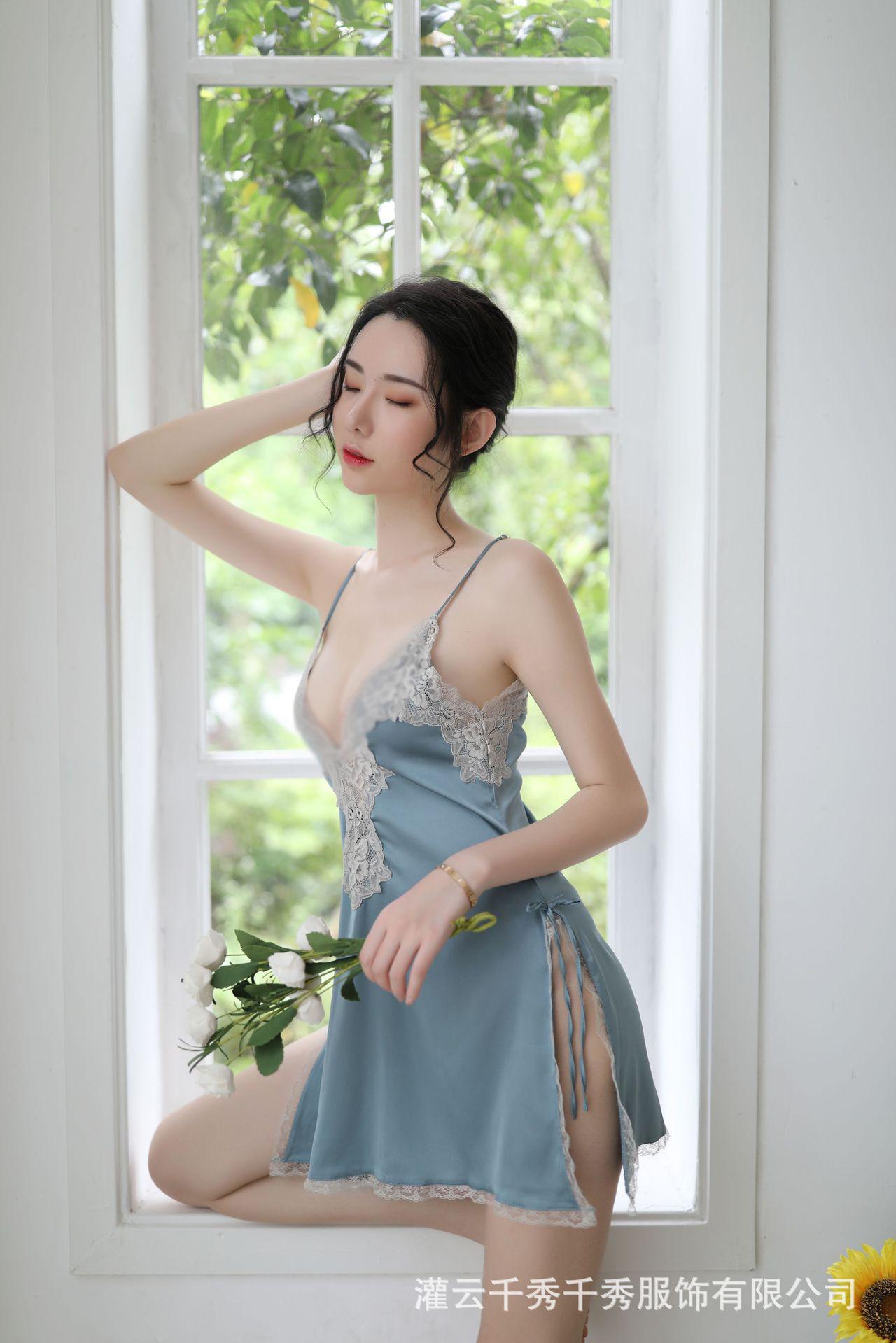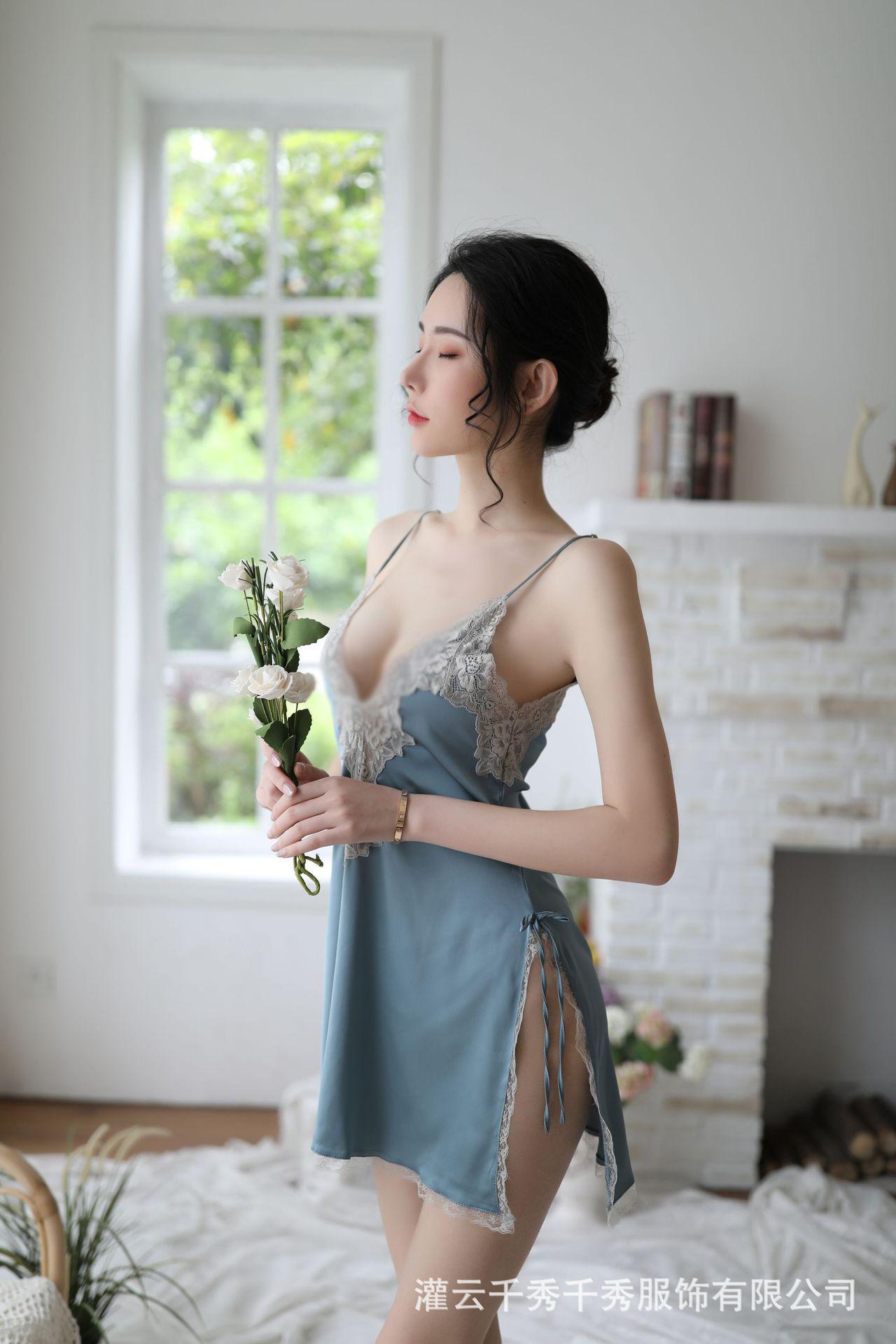 Nuevo camisón sexy de encaje bordado, traje de tentación, pijama con tirantes, ropa interior sexy para el hogar.