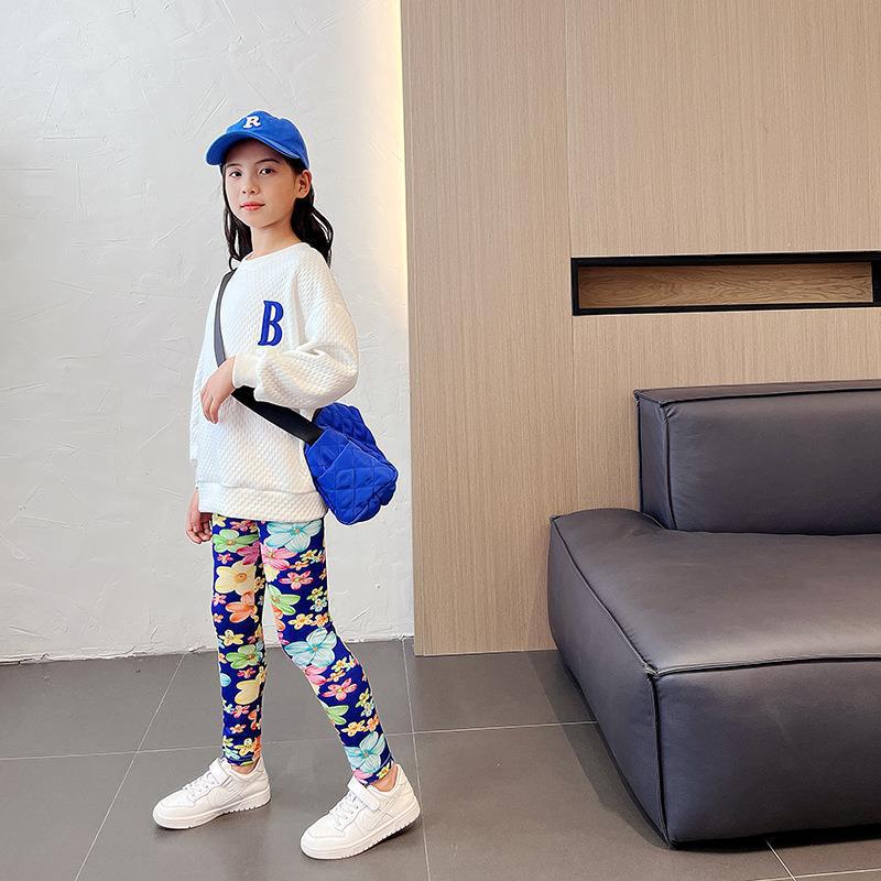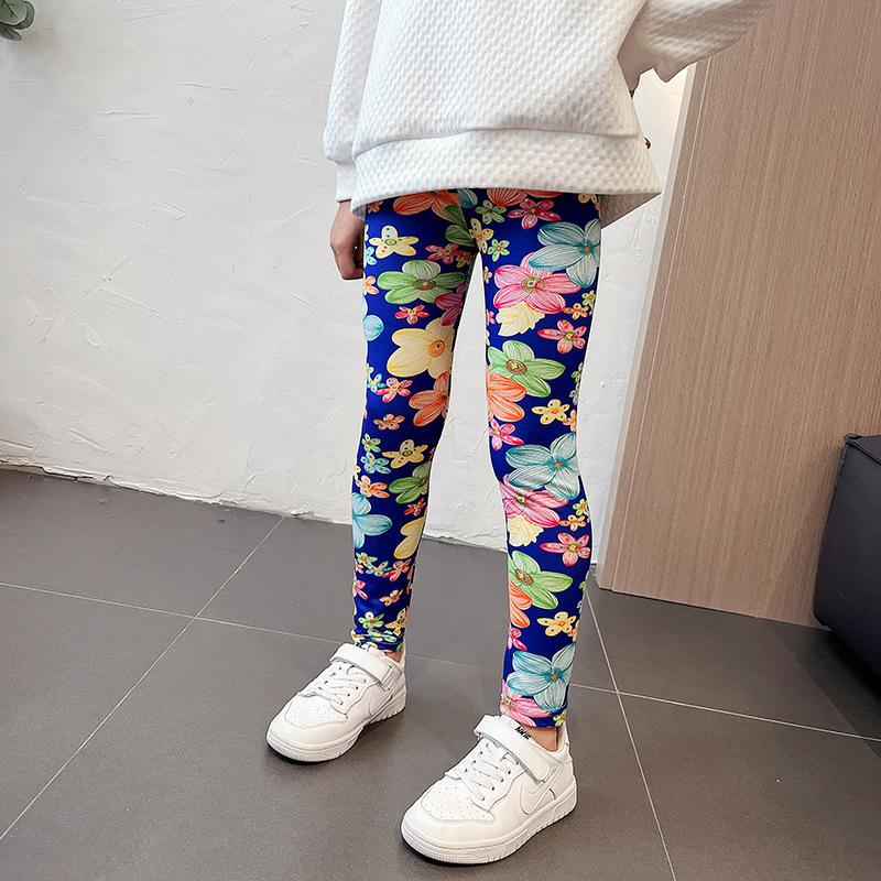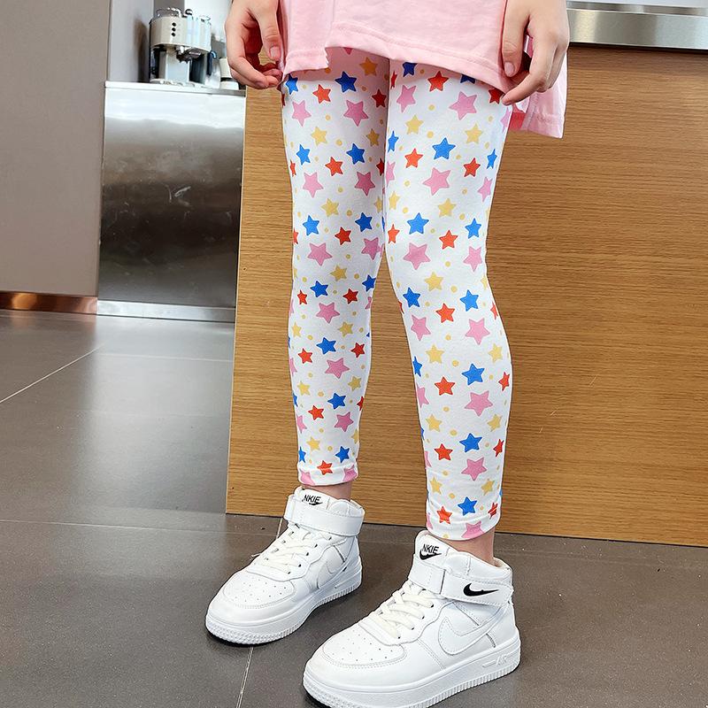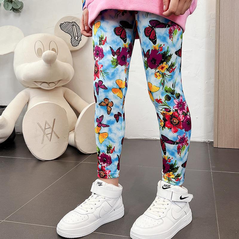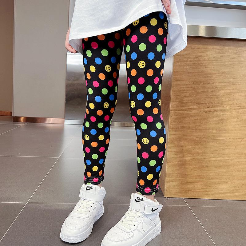 Pantalones capri de nuevo estilo coreano transfronterizo para niñas, leggings estampados a color que combinan con todo, delgados para primavera y otoño, seda de leche Amazon