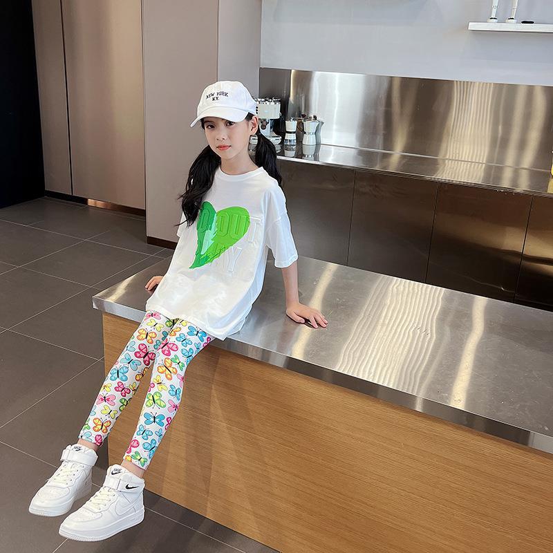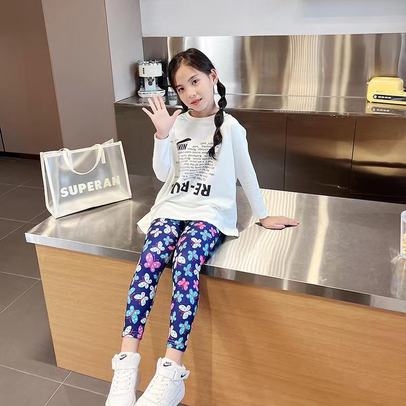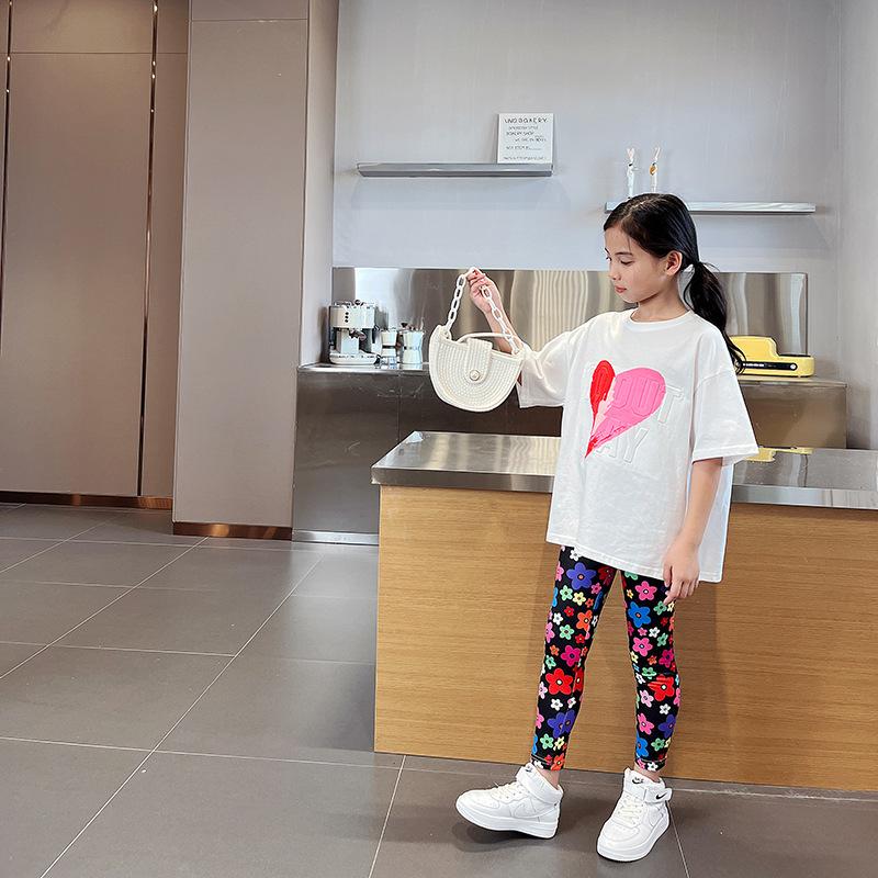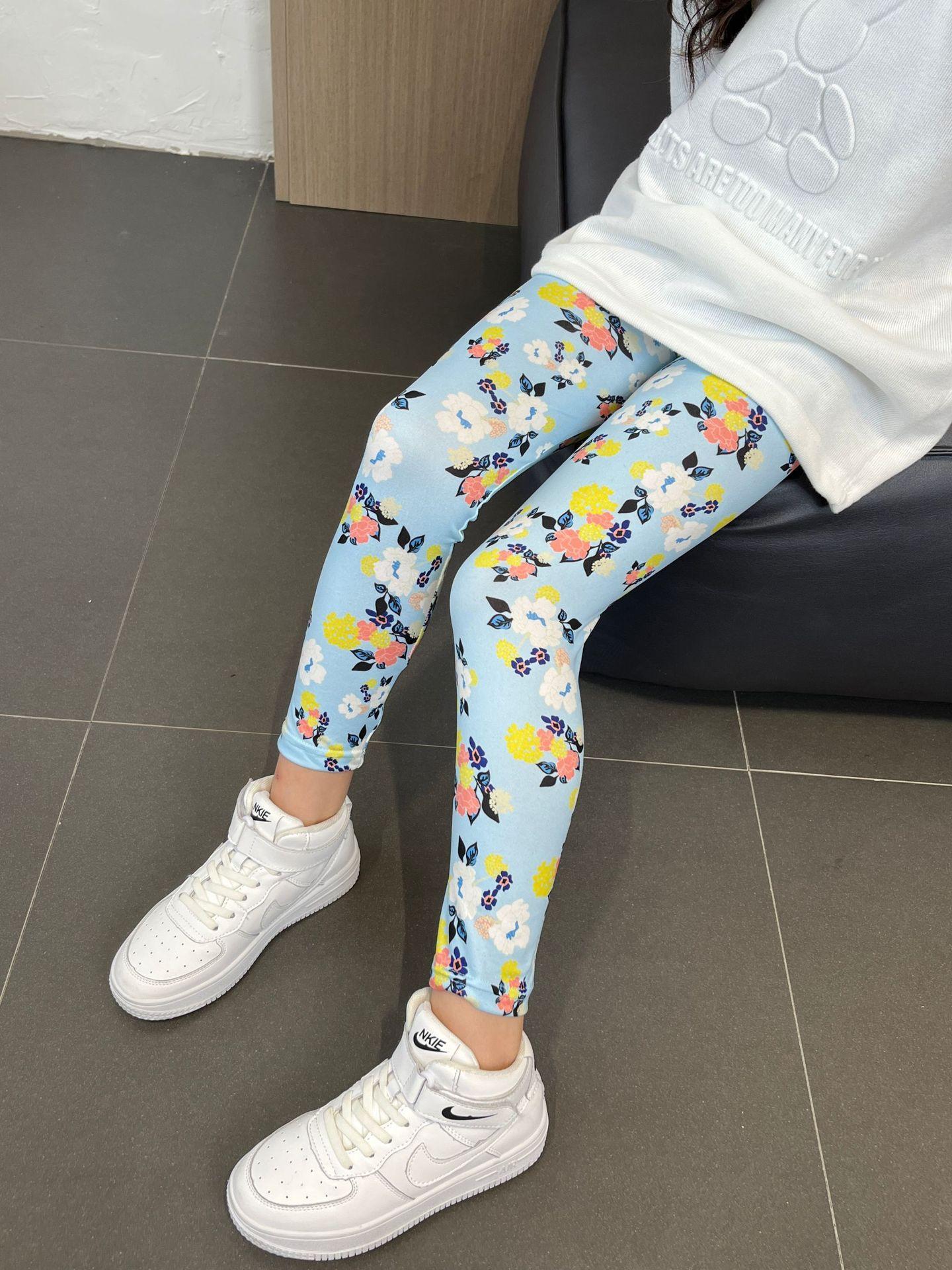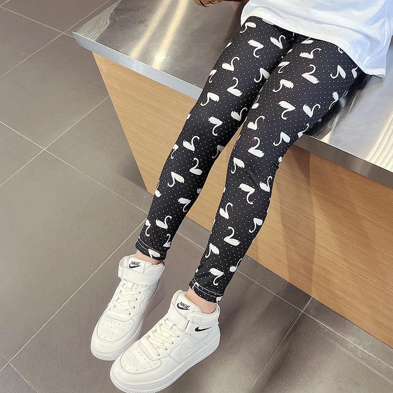 Pantalones capri de nuevo estilo coreano transfronterizo para niñas, leggings estampados a color que combinan con todo, delgados para primavera y otoño, seda de leche Amazon