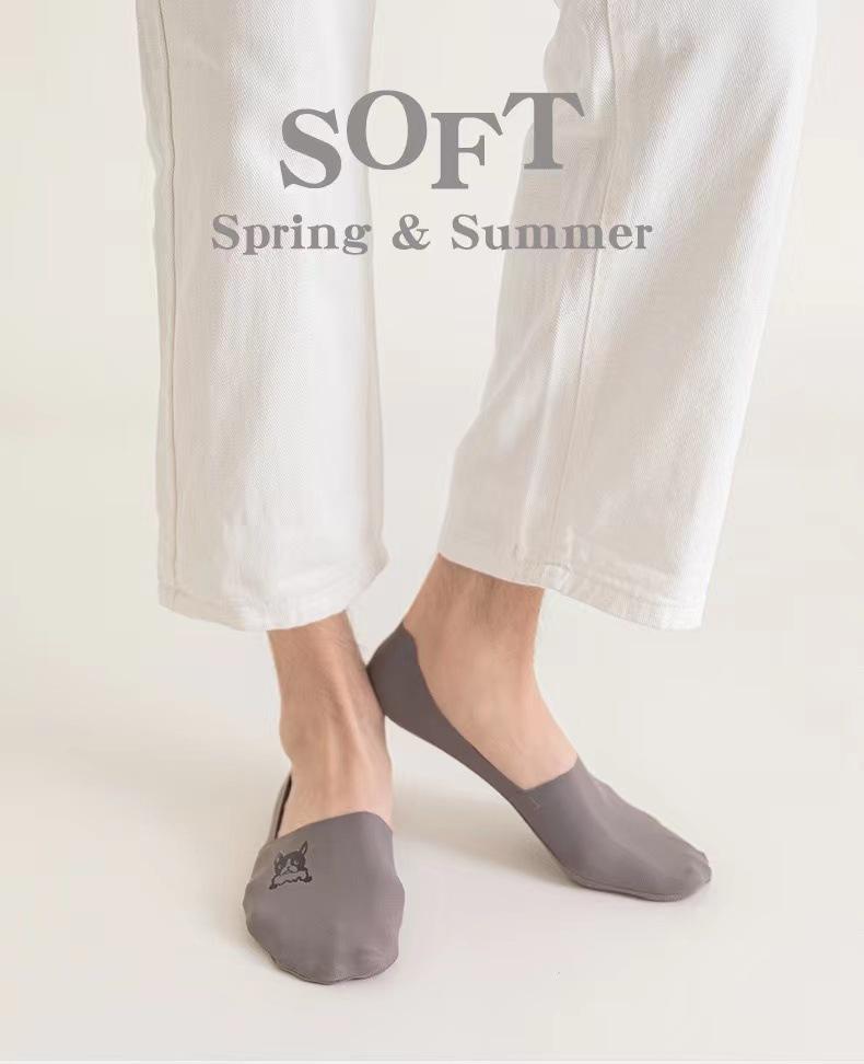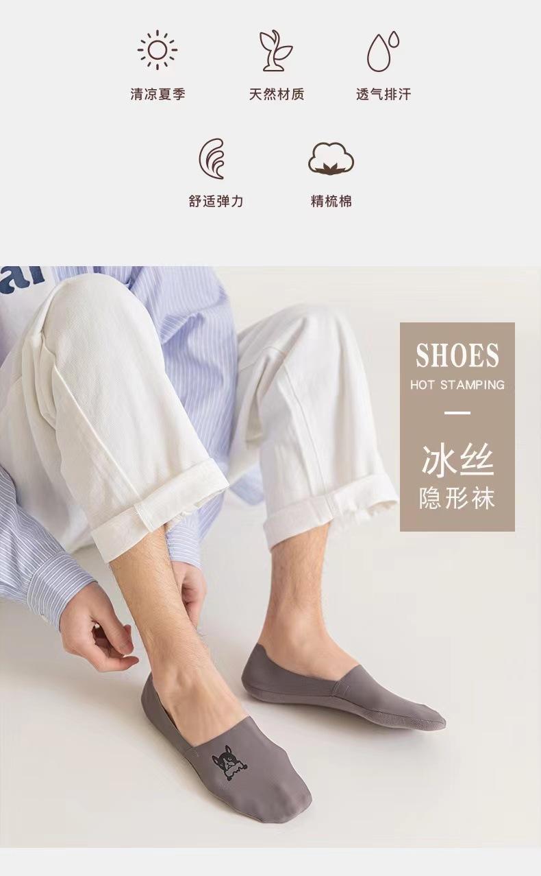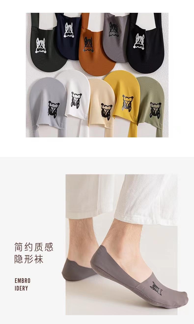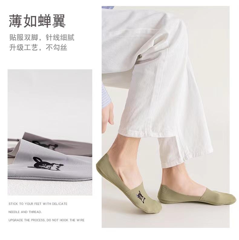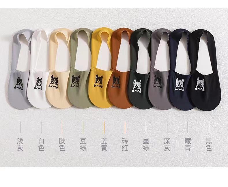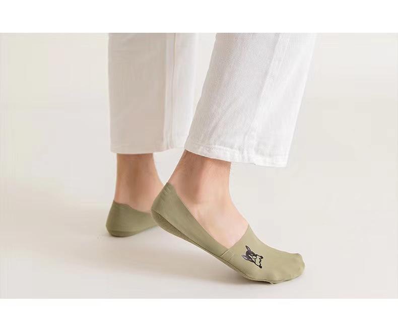 Calcetines de hielo para hombre de color sólido transpirables invisibles calcetines talón silicona antideslizante calcetines de algodón de cachorro de dibujos animados venta al por mayor de fábrica