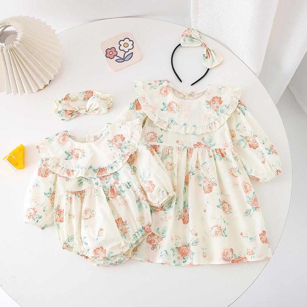Mameluco Triangular para Bebé Otoño 2025 Manga Larga Estilo Nuevo Onesie para Niñas Vestido Infantil Ropa de Hermana