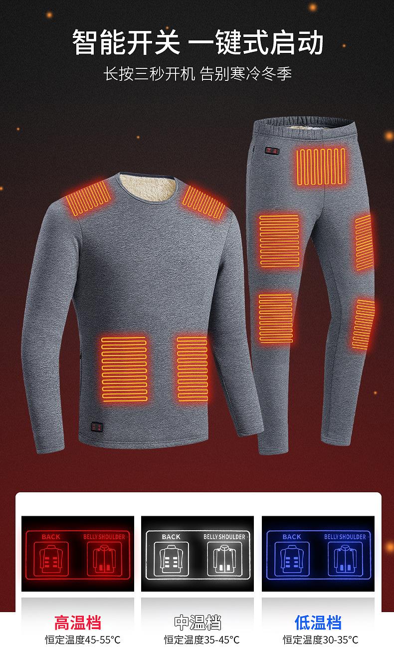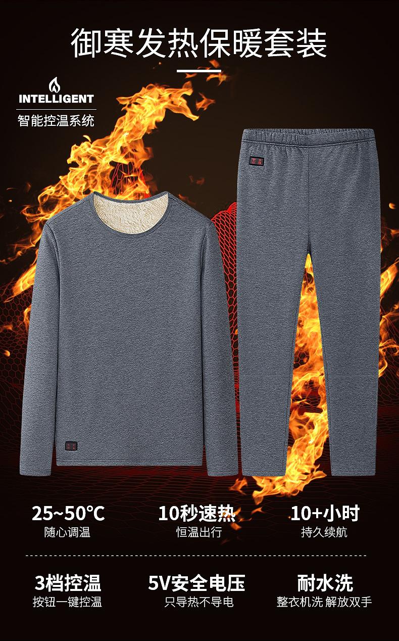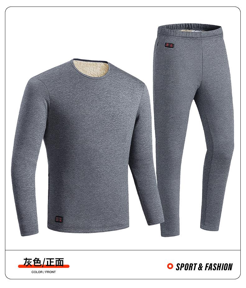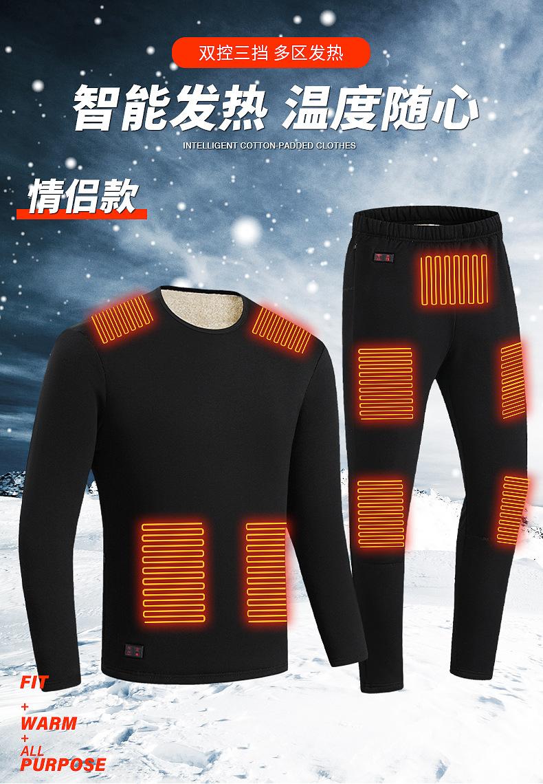 Ropa interior térmica con calefacción inteligente para hombre, ropa calefactora con carga USB, traje grueso de color sólido a prueba de frío, ropa y pantalones de otoño para mujer