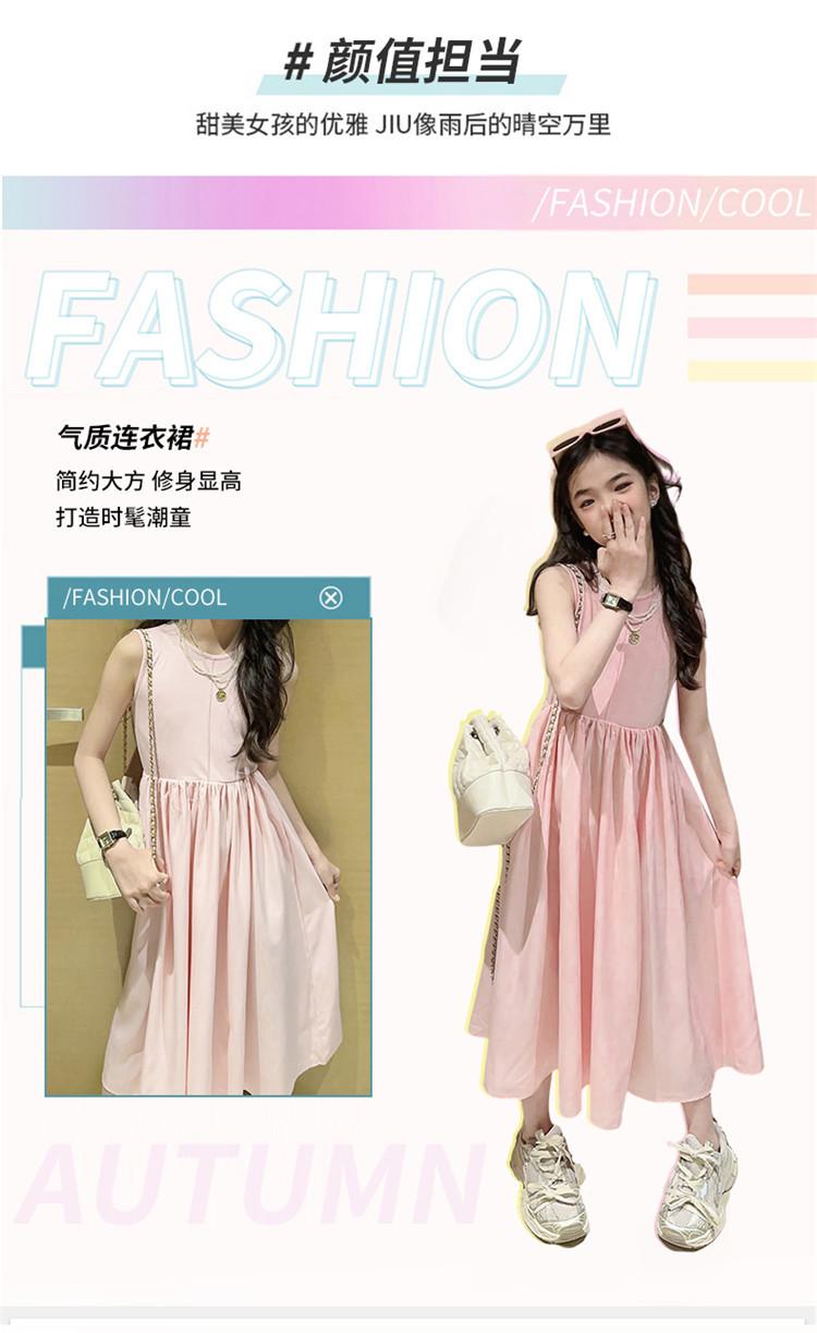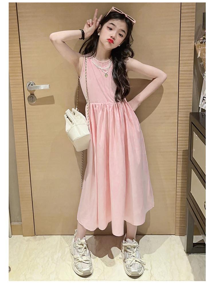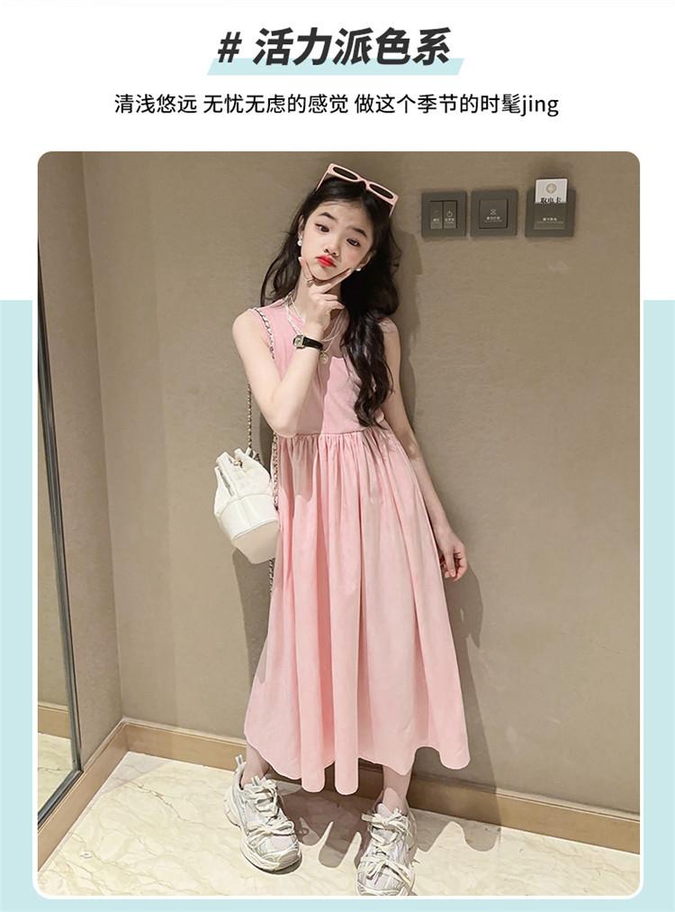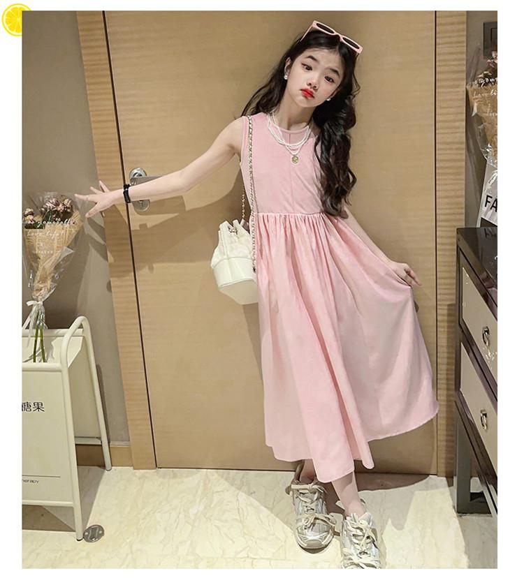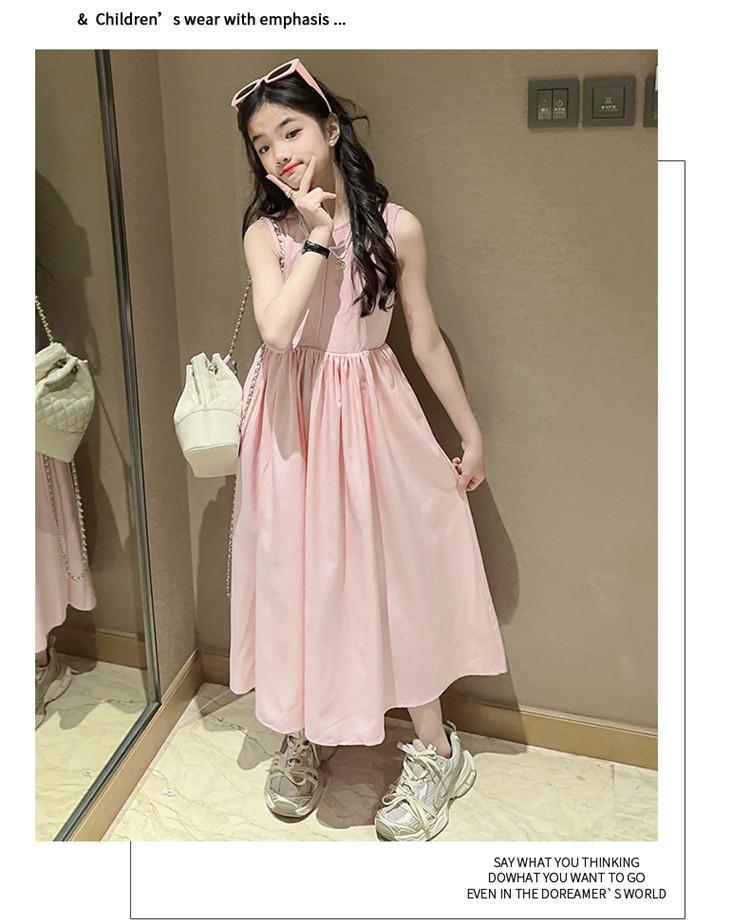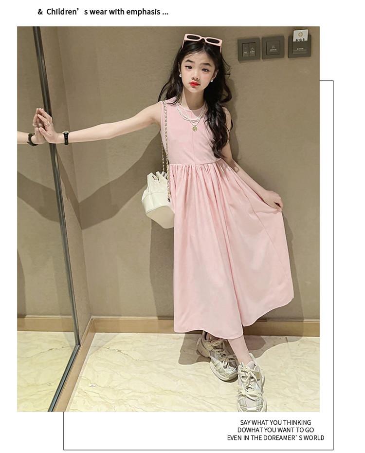 Vestido de niña, vestido de verano 2024, nuevo vestido de princesa largo de primavera y otoño para niños, vestido largo en línea estilo océano rojo para niños medianos y grandes