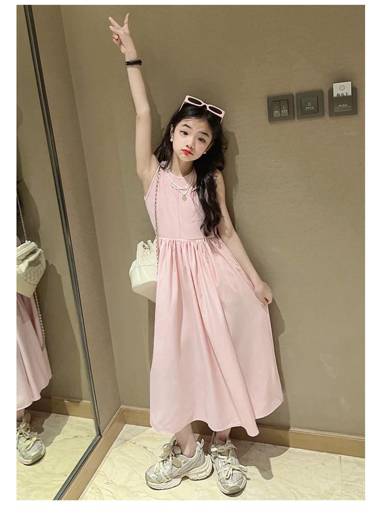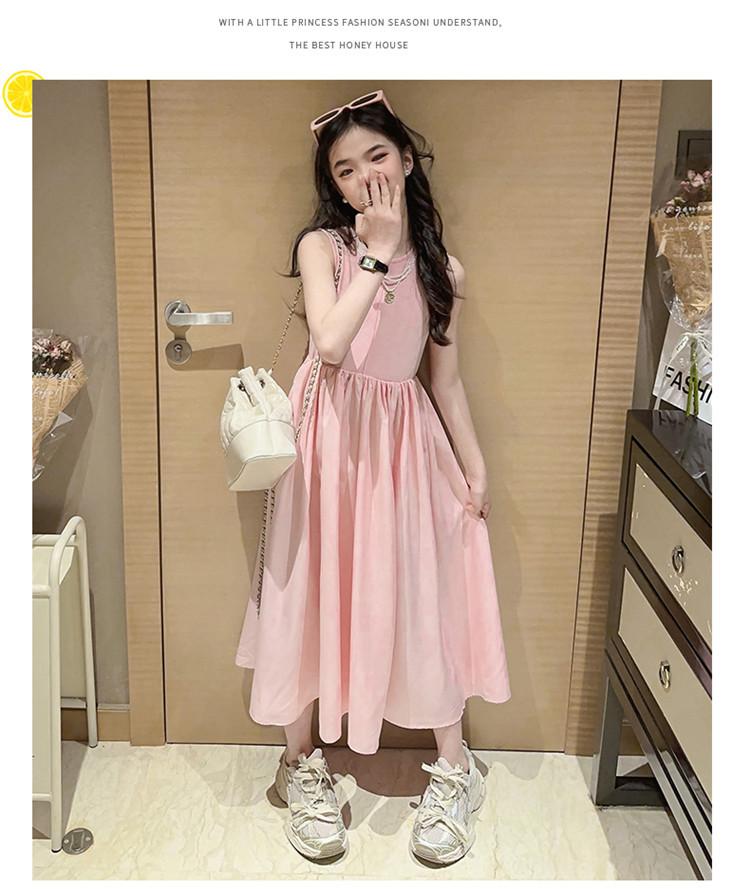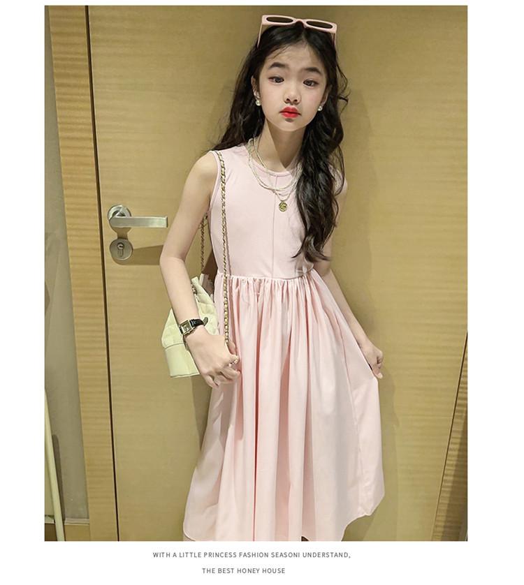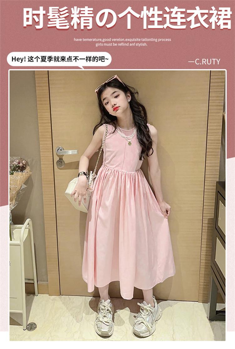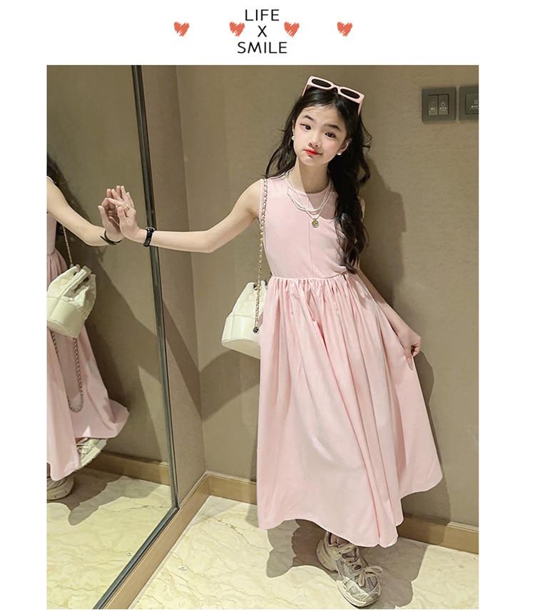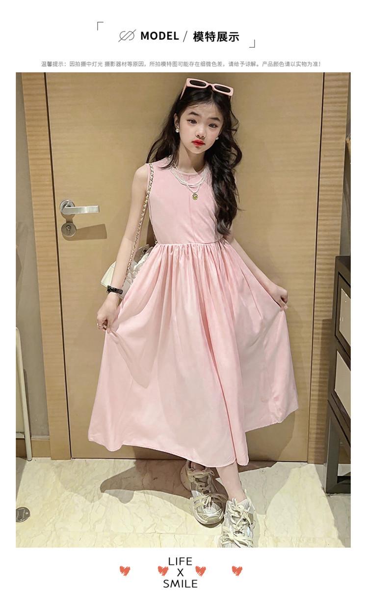 Vestido de niña, vestido de verano 2024, nuevo vestido de princesa largo de primavera y otoño para niños, vestido largo en línea estilo océano rojo para niños medianos y grandes