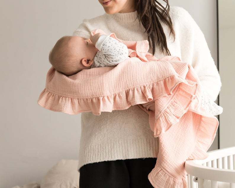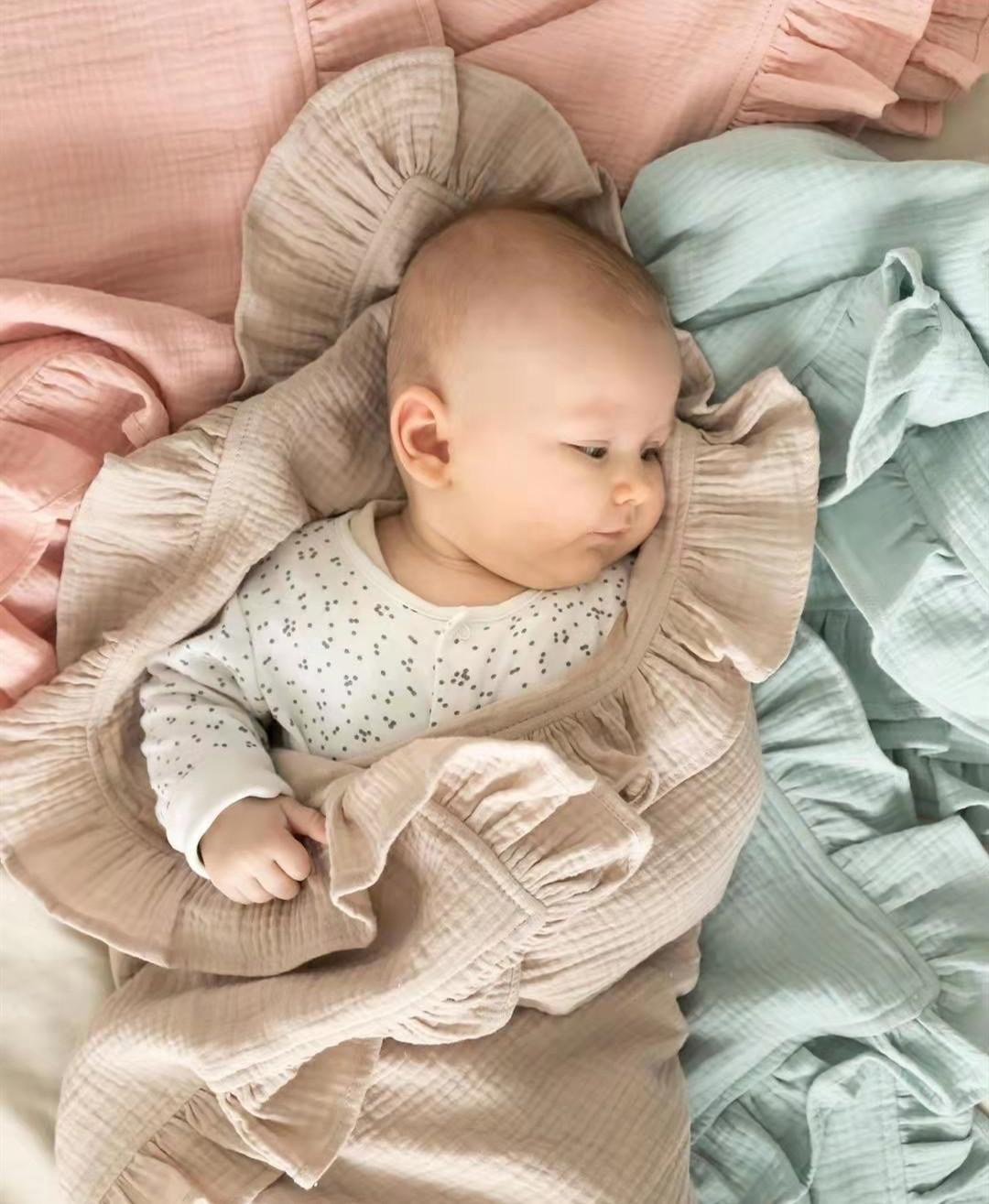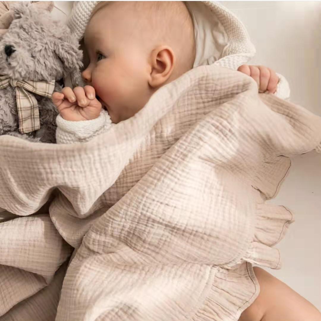 Ins Bebé Volantes Color Puro Algodón Gasa Manta Manta de Aire Acondicionado para Niños Toalla de Baño para Bebé Envoltura para Envolver Amigable con la Piel