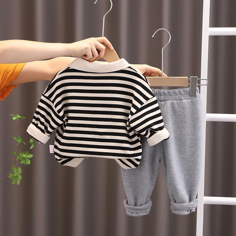 Ropa para niños, traje de primavera para niños, nuevo estilo coreano 2023, traje de dos piezas a rayas de estilo occidental para niños, guapo traje de moda para bebés