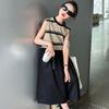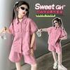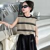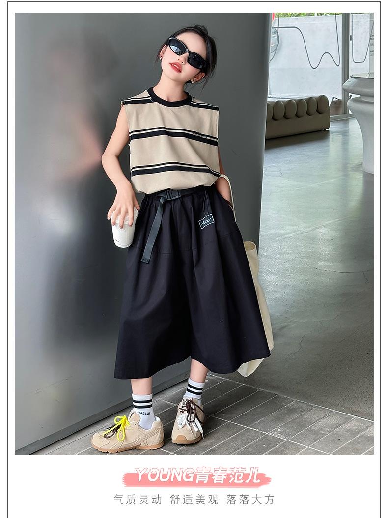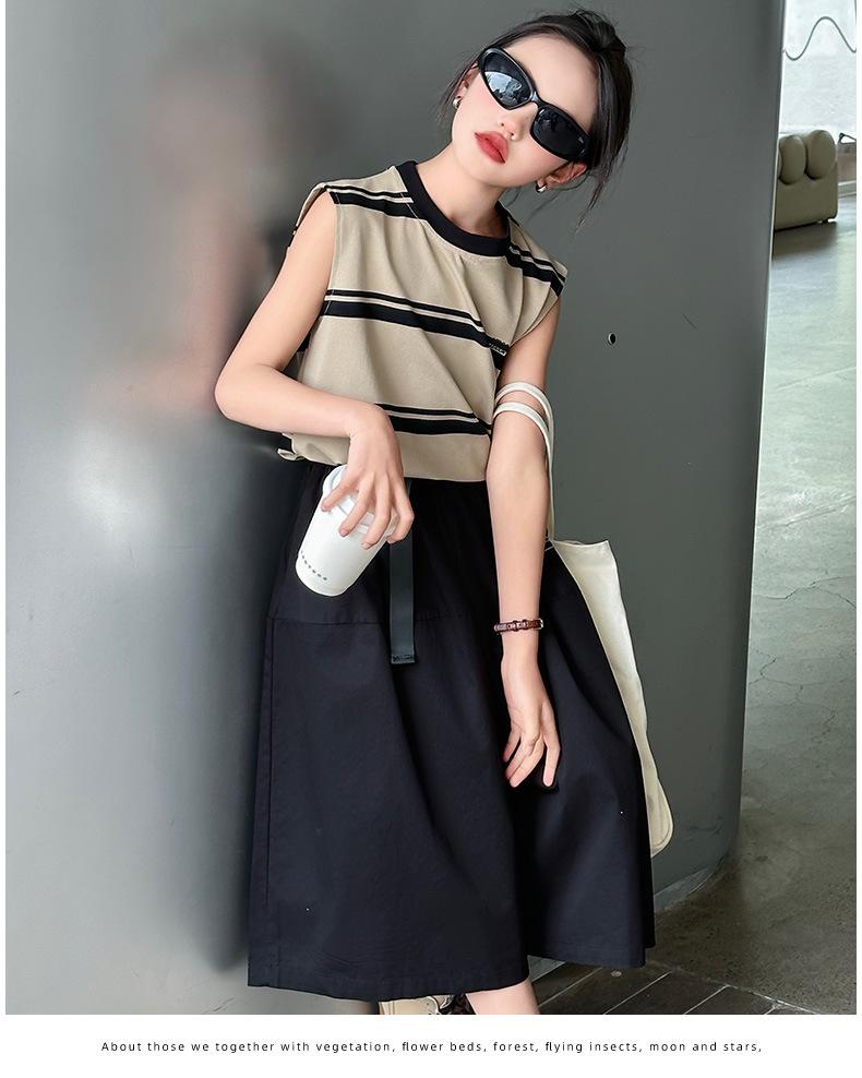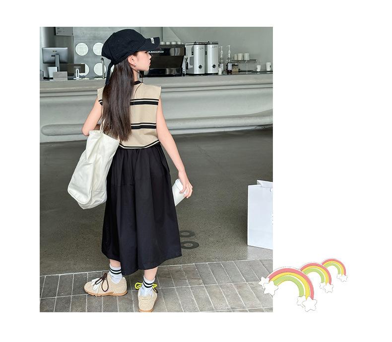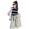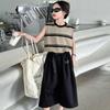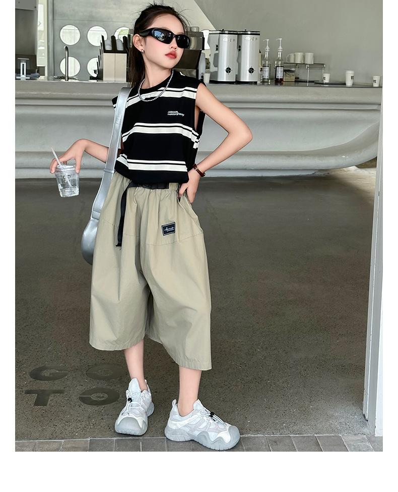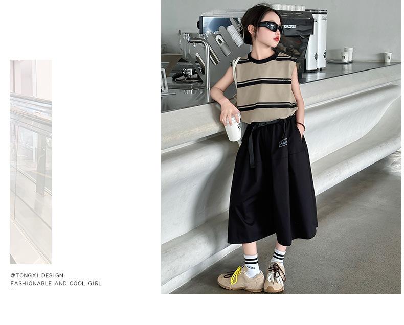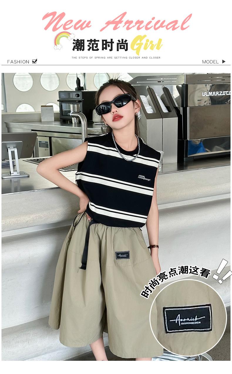 Traje de verano para niñas 2024, nuevo estilo coreano, estilo occidental, para niñas de talla mediana, de moda, informal, con parte superior a rayas, pantalones de vestir a la moda.