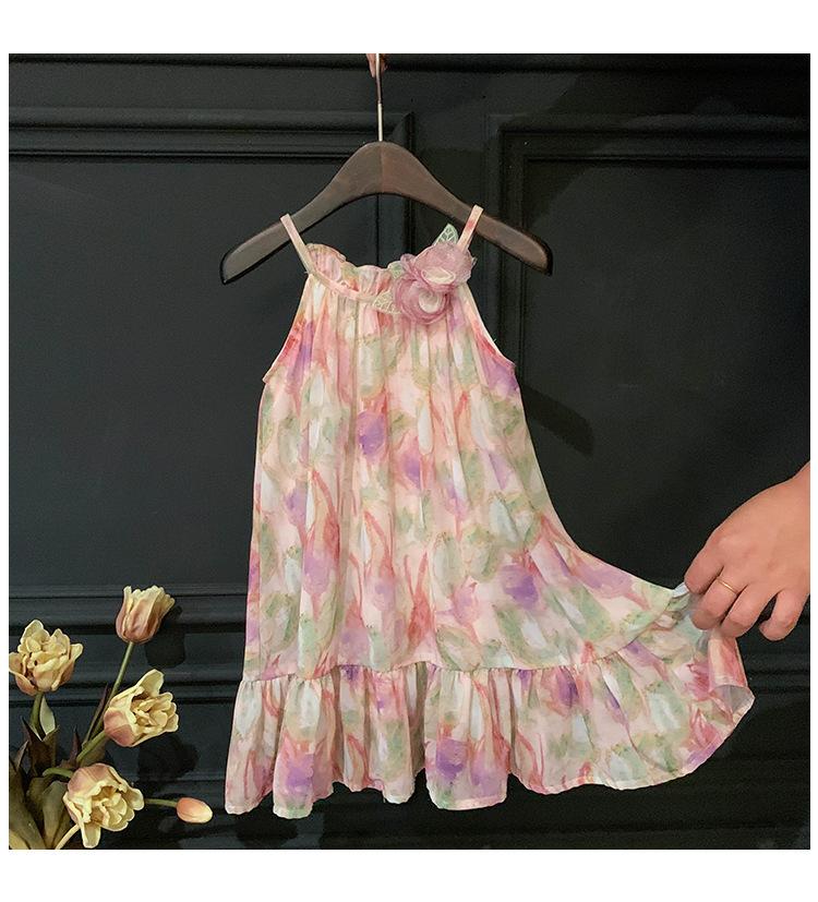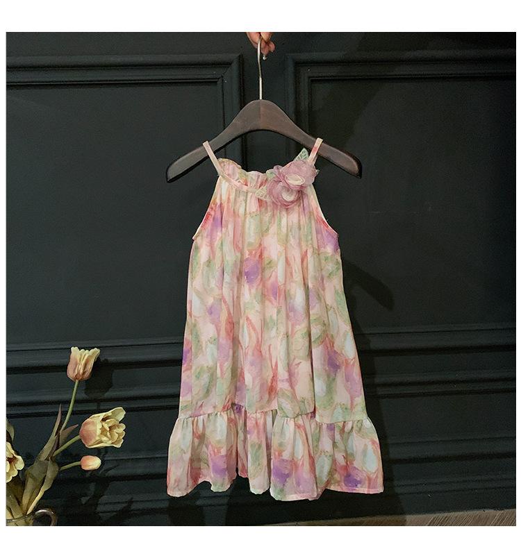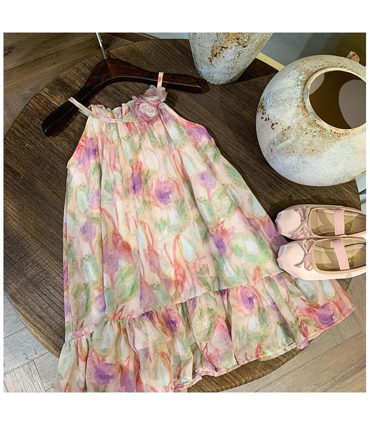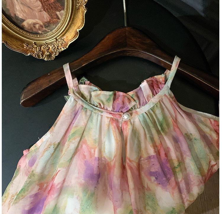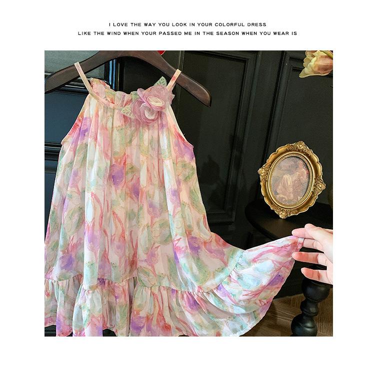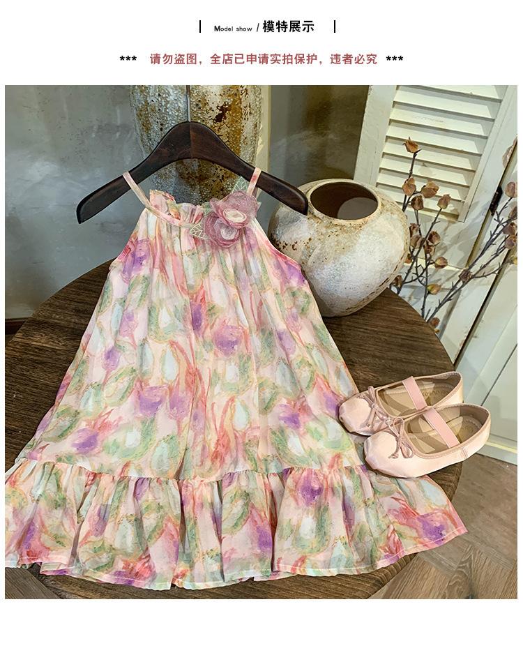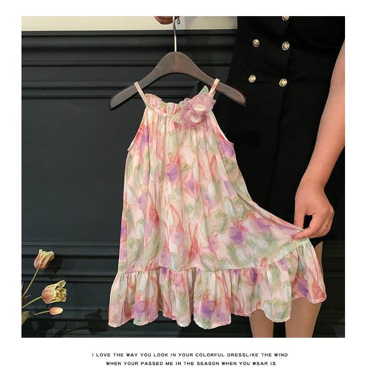 Vestido de princesa con estampado de lunares para niña, novedad de verano 2024, con pintura al óleo, estilo moderno