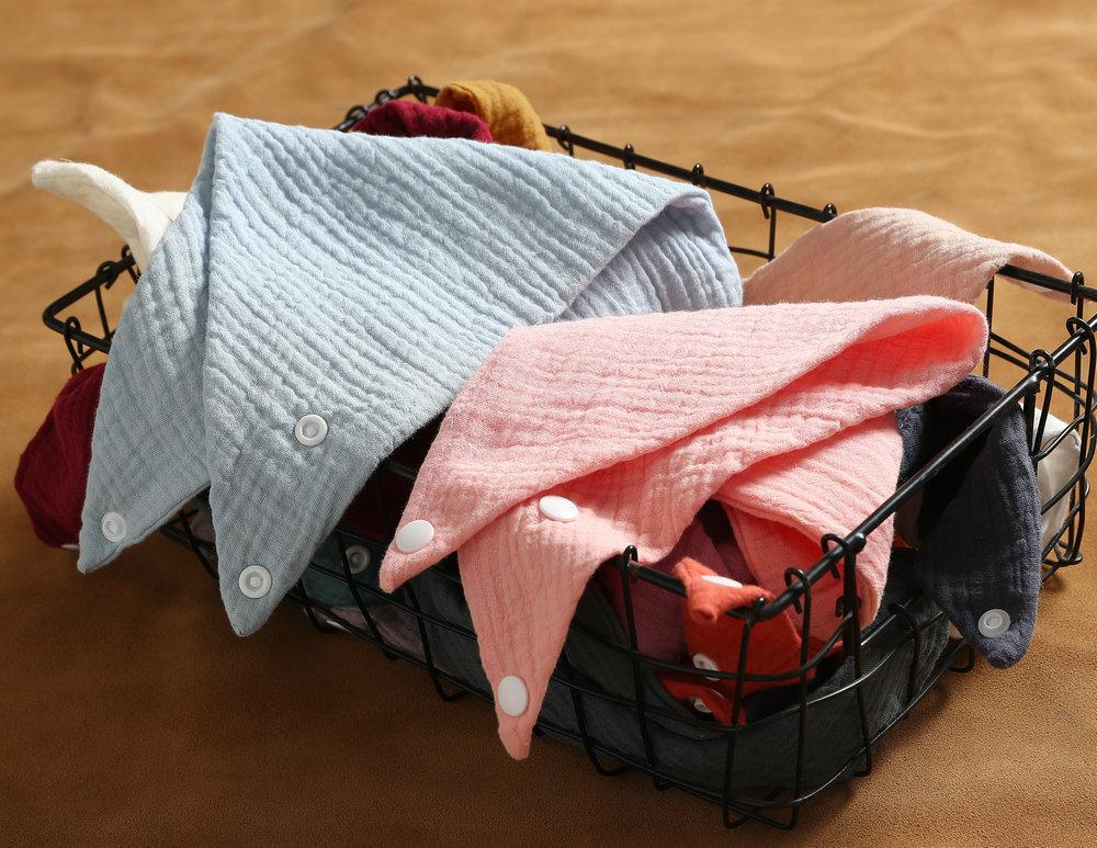Toalla de saliva de gasa de algodón para bebé, babero doble para bebé, hilo espumoso transfronterizo europeo y americano, bolsillo para comer para bebé