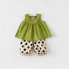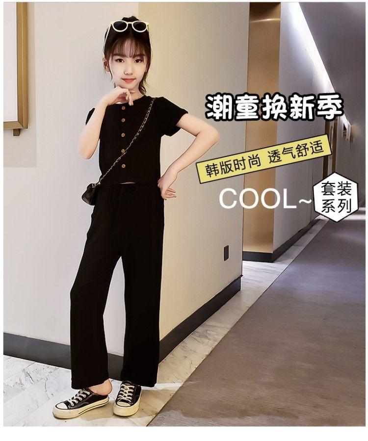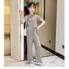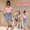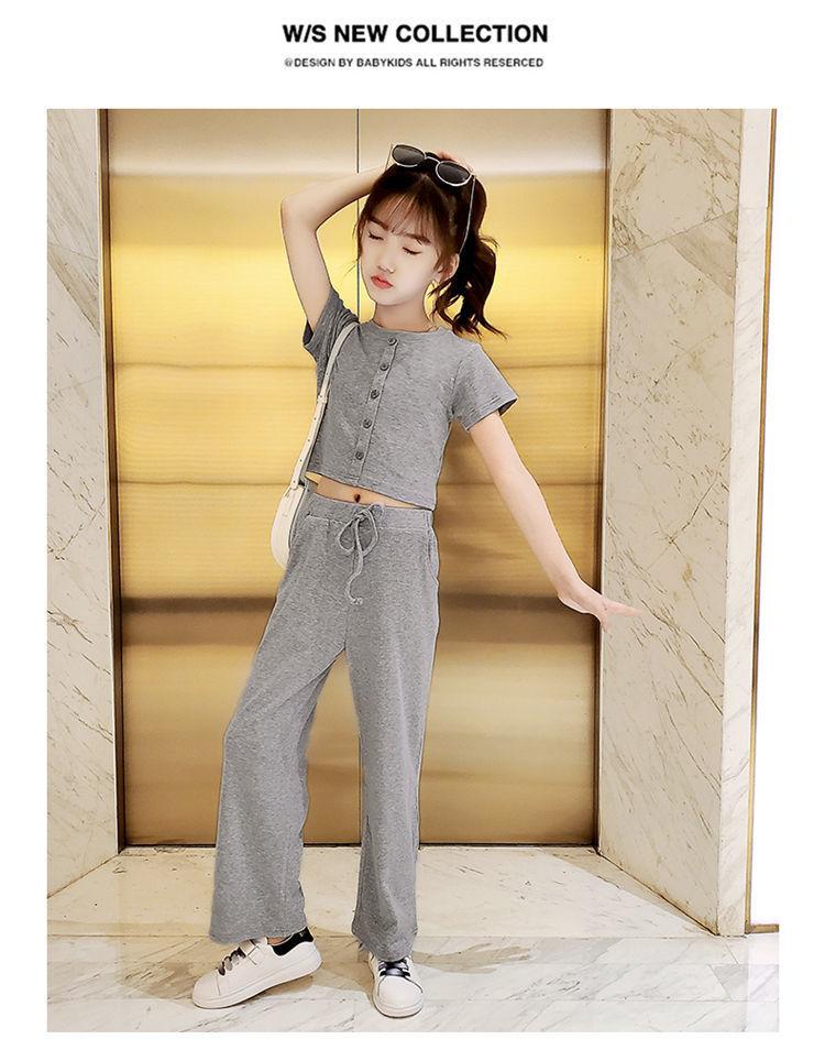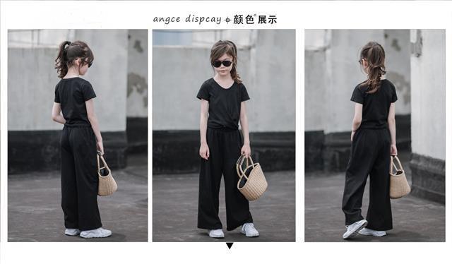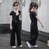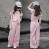 Traje de verano para niñas Moda Rojo de Internet Ropa para niños 2023 Conjunto de dos piezas de pantalones de pierna ancha de manga corta para niños