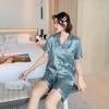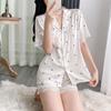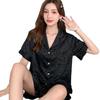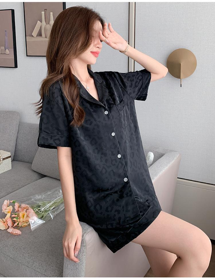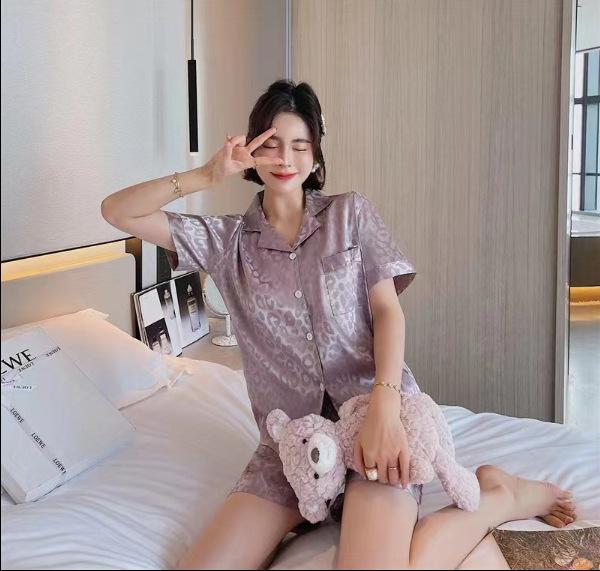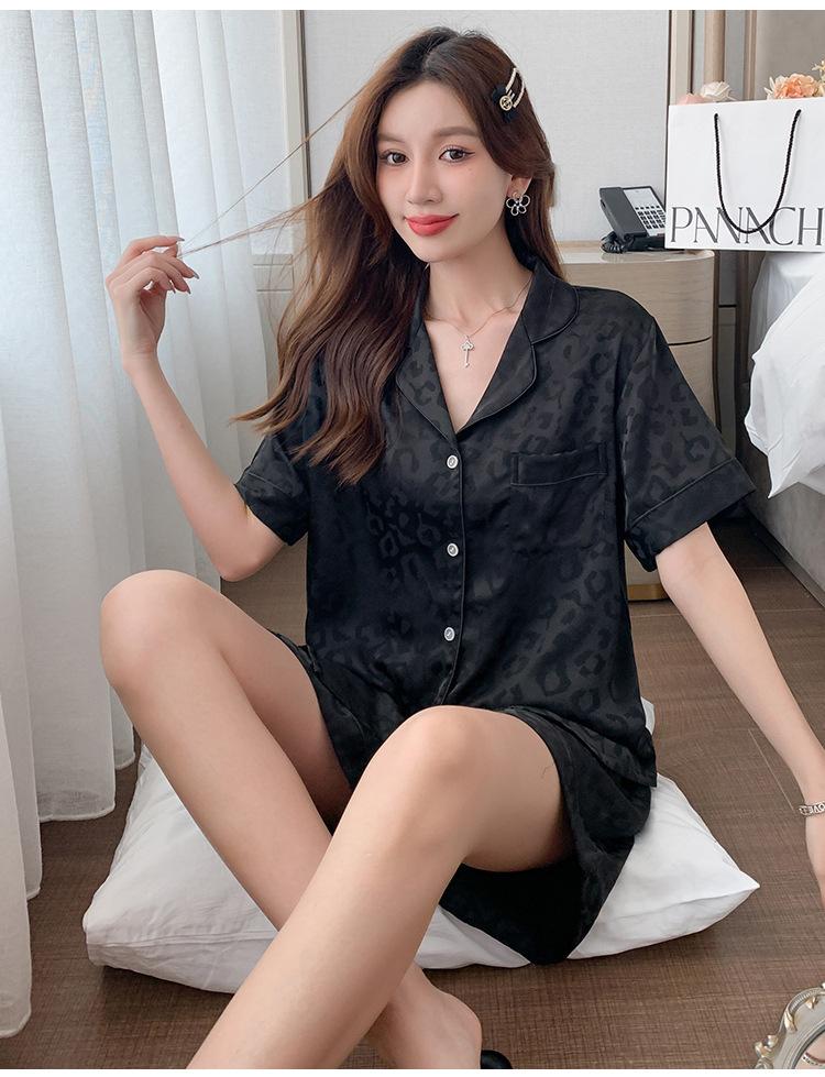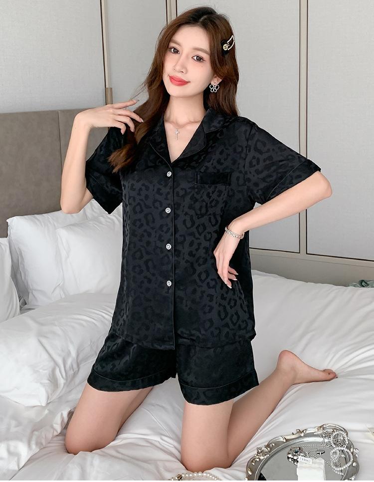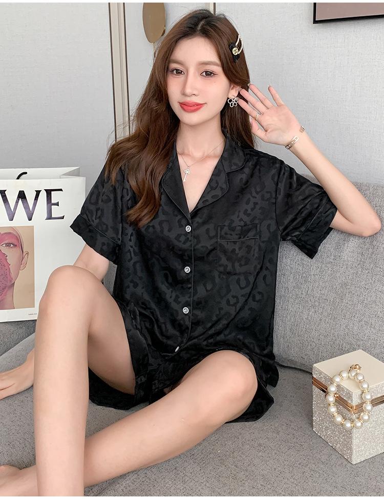 Pijamas de mujer de primavera y verano nuevos de seda Pijamas de seda de hielo para mujer Ropa de casa con estampado de leopardo Pantalones cortos de manga corta Ropa de casa de seda artificial