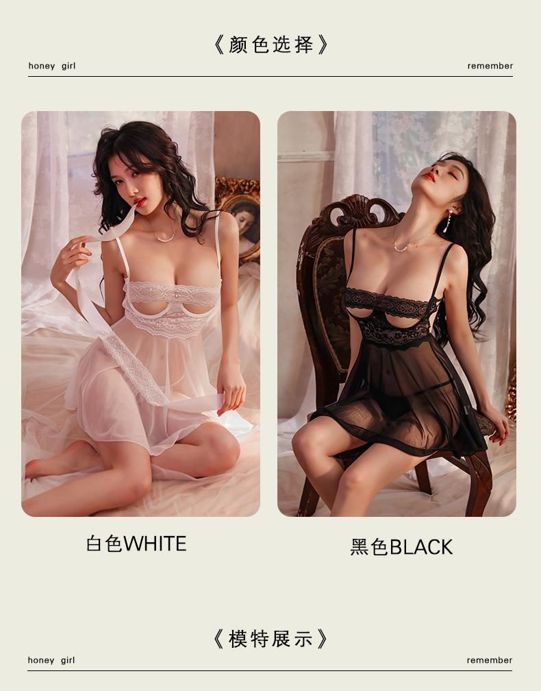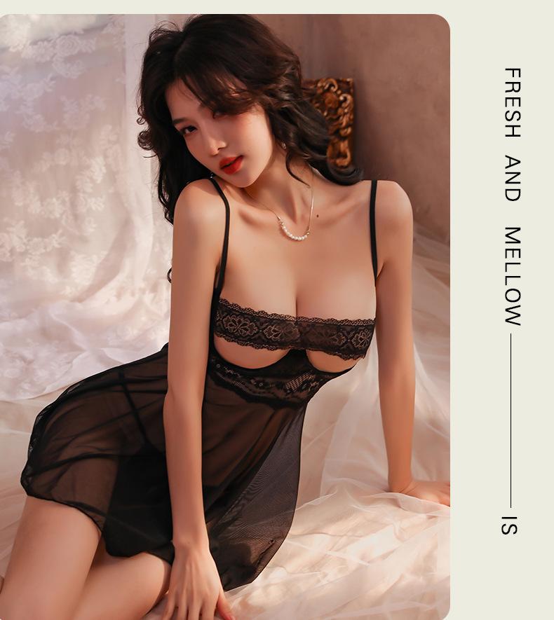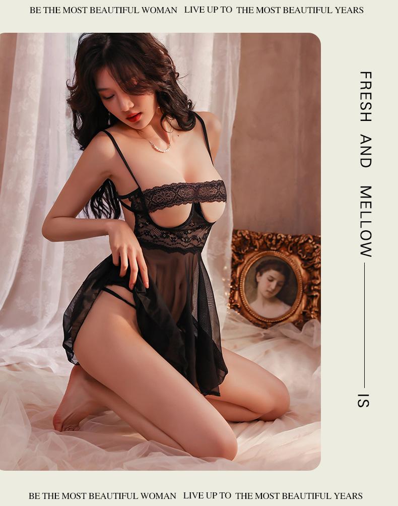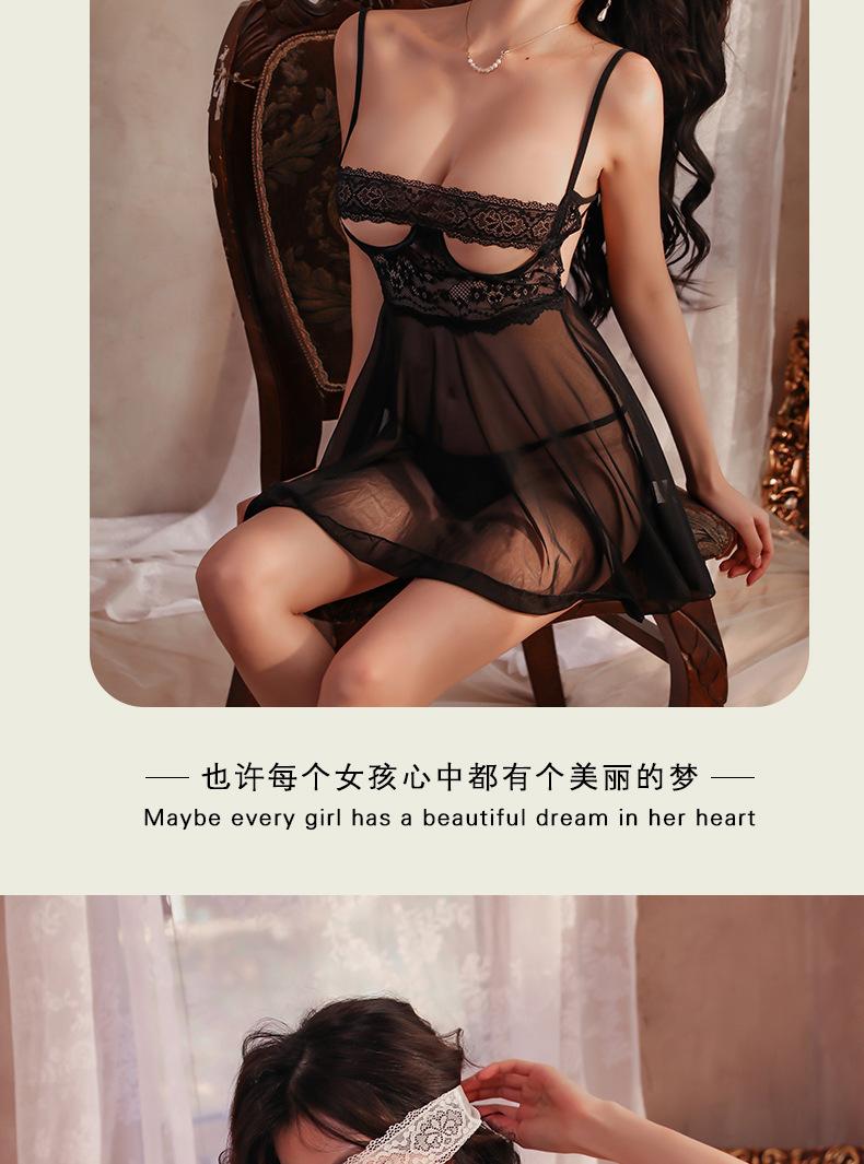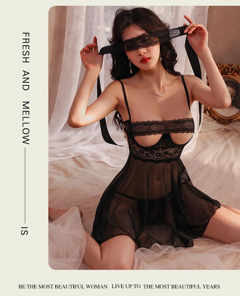 Lencería sexy, pijama de encaje de malla transparente, pasión, tentación, ahuecado, libre, abierto, uniforme, camisón