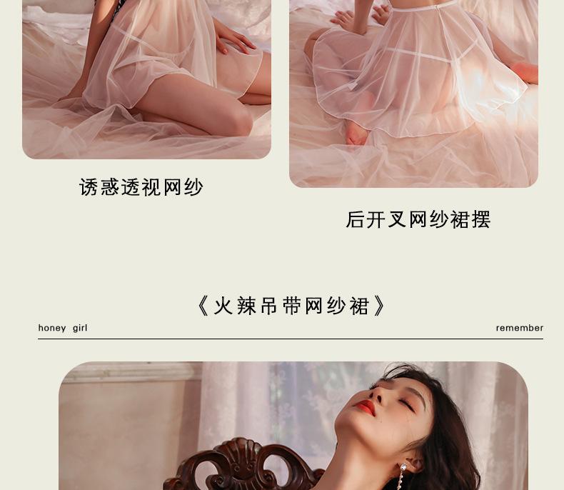 Lencería sexy, pijama de encaje de malla transparente, tentación apasionada, camisón de uniforme hueco y libre de quitar.