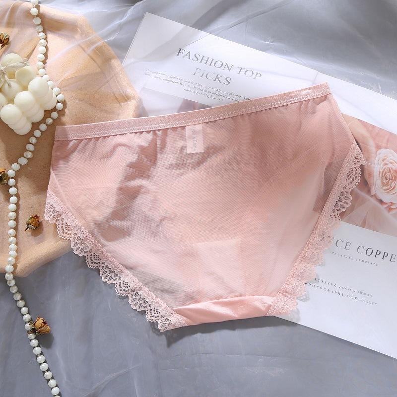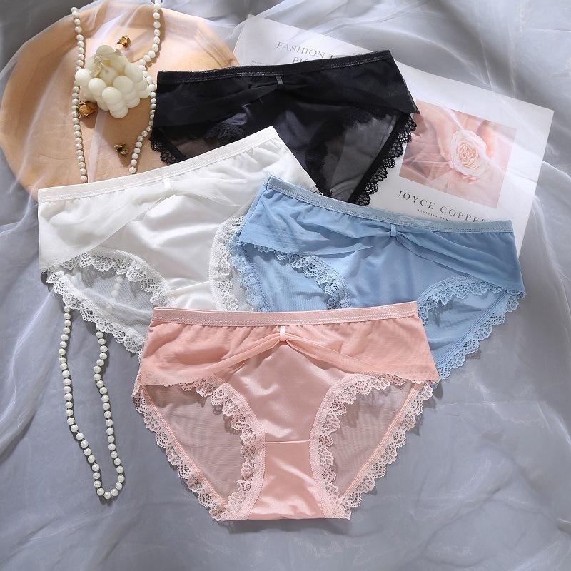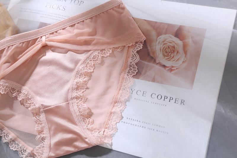 Musas a la luz de la luna ~ Ropa interior de malla de puro deseo japonés para niña, bóxer sexy de encaje de algodón transpirable sin costuras de cintura baja