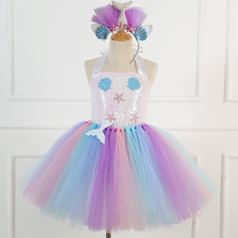 Compra Vestido de Sirena con Lentejuelas Pequeñas para Niños Europeos y Americanos, Vestido de Princesa para Niños con Tocado, Falda Tutú de Malla al por mayor en Joom.pro