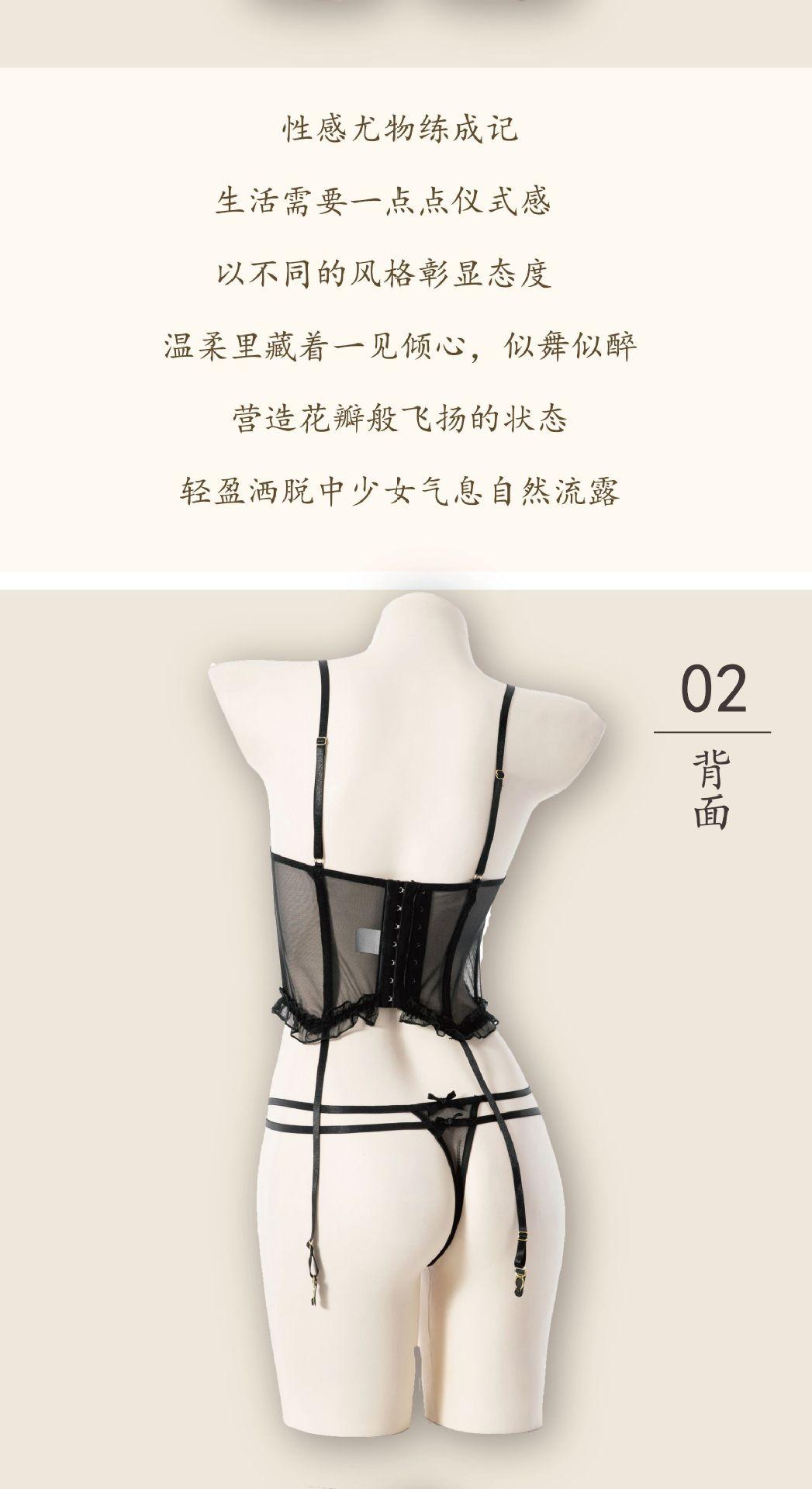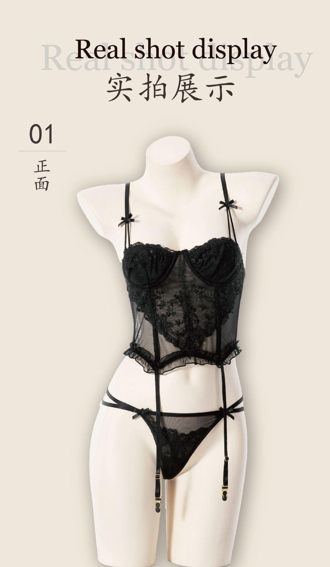 Conjunto de lencería sexy francesa con encaje, tentación, pecho pequeño, pijamas grandes y coquetos para el cabello.