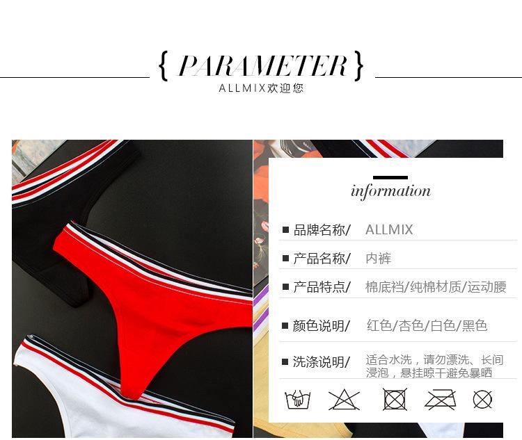 Ropa interior de mujer sexy de algodón deportivo a rayas de cintura ancha de cintura baja sin costuras bragas de mujer tanga