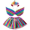 Vestido de tutú para niñas, falda de arcoíris estampada de tres piezas, disfraz de fotografía de baile de actuación, falda para niños