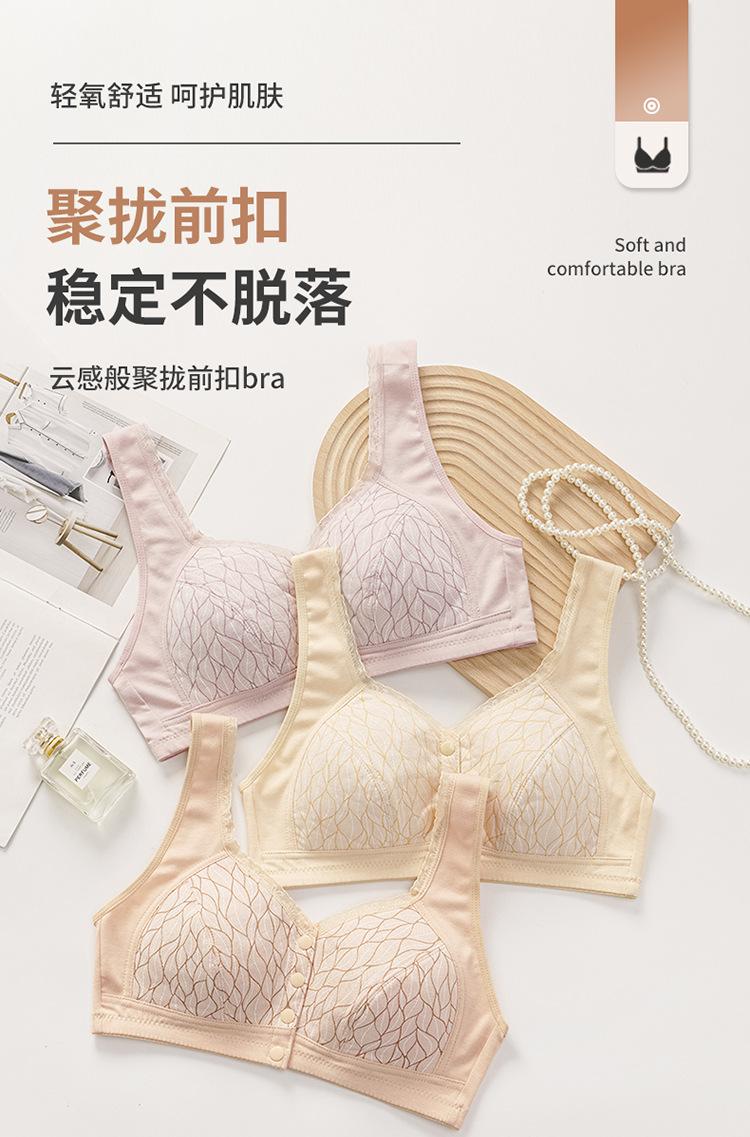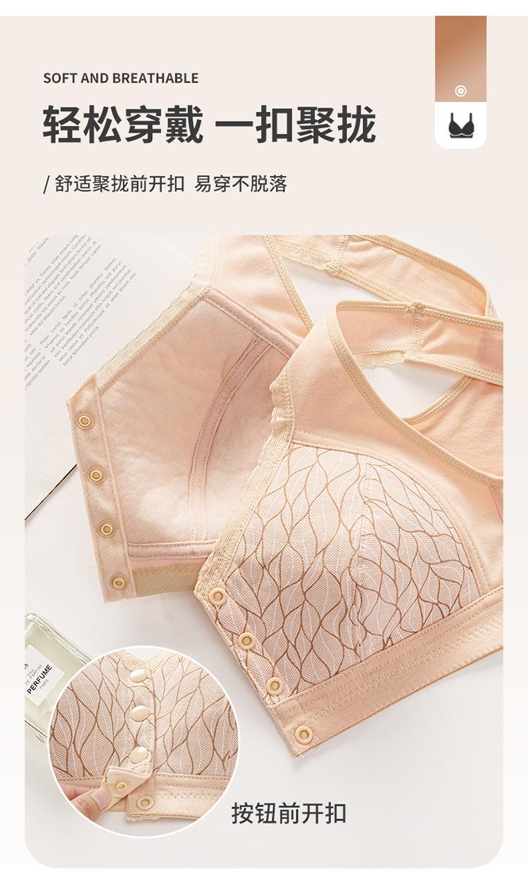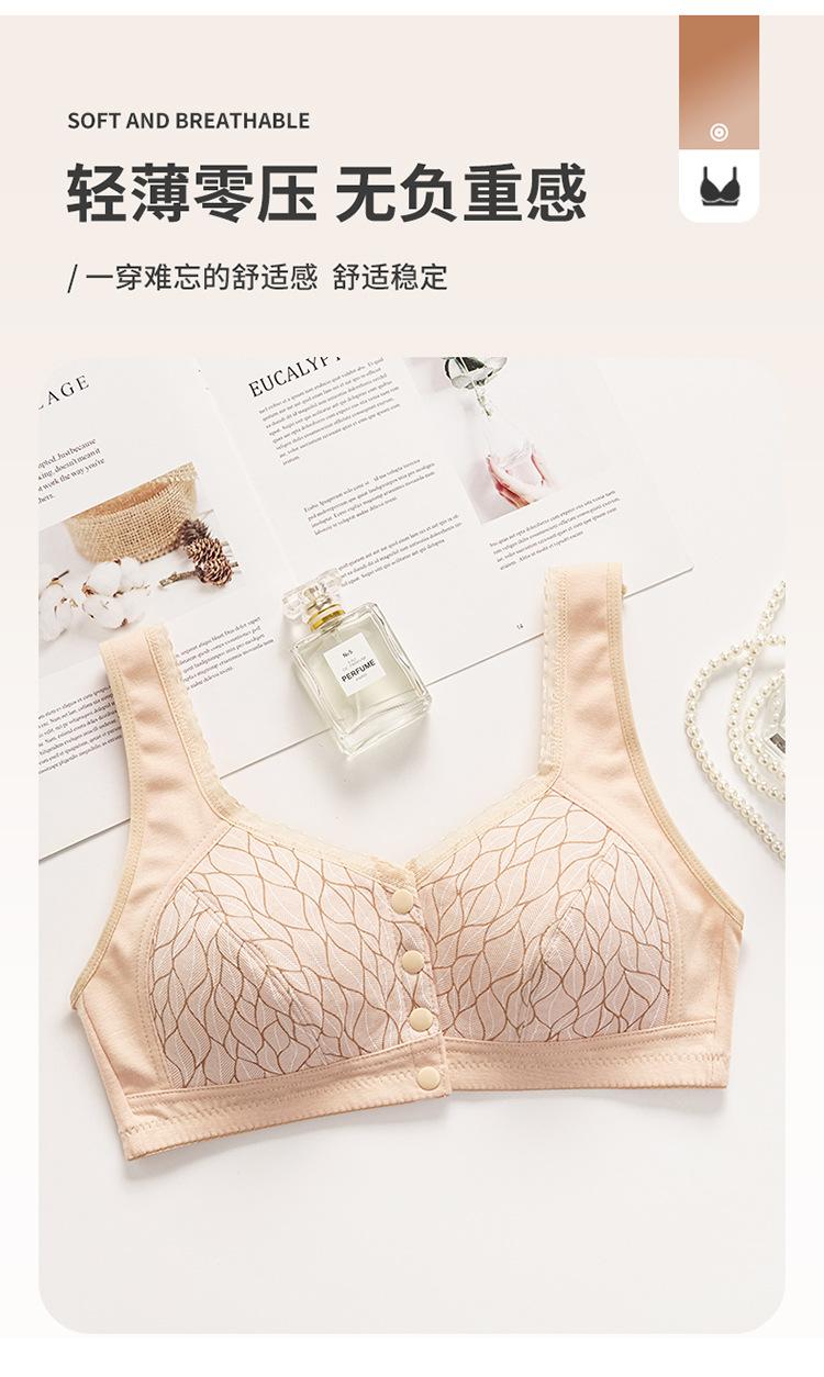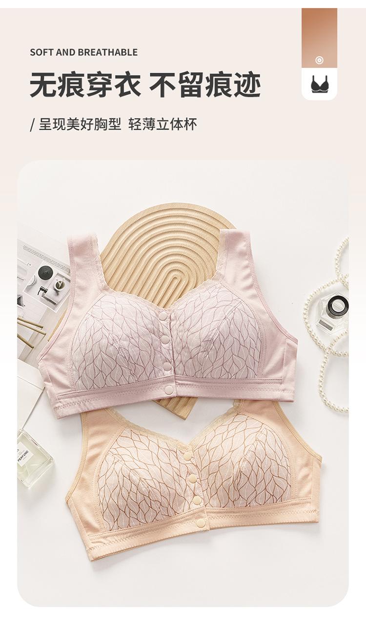Copas de Algodón Suave Hebilla Frontal Ropa Interior para Mujeres de Mediana Edad y Adultas Talla Grande Sin Aro de Acero Tirantes Anchos Tipo Chaleco Nuevo Sujetador Jacquard