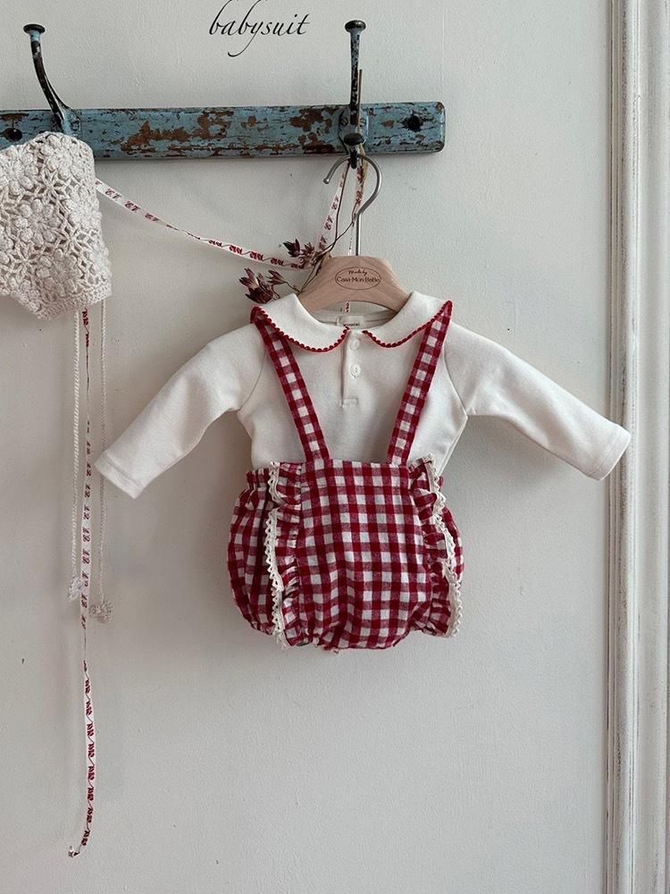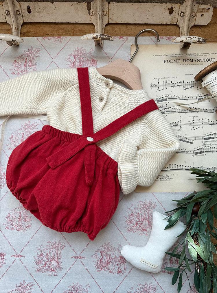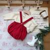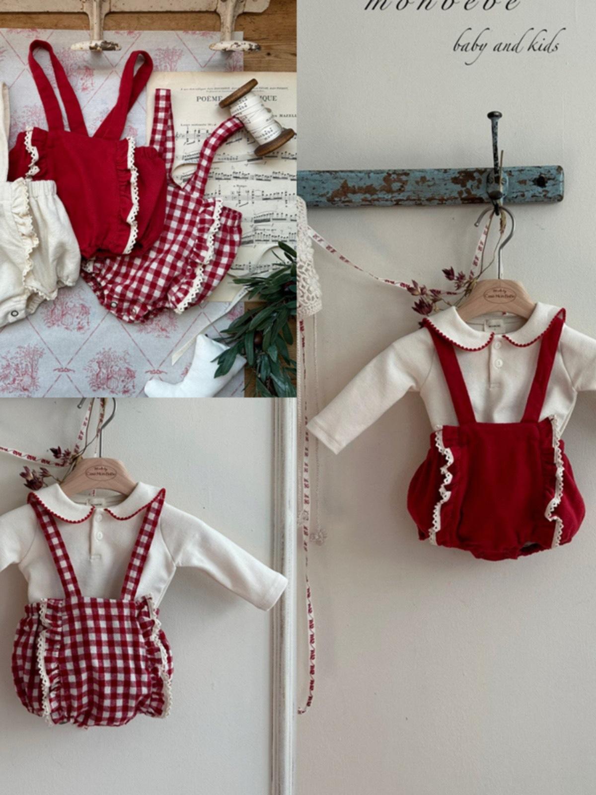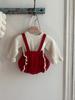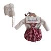 Red butt-covering pants, Red plaid butt-covering pants, Apricot clothes (including hood)