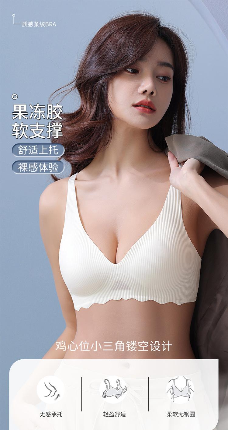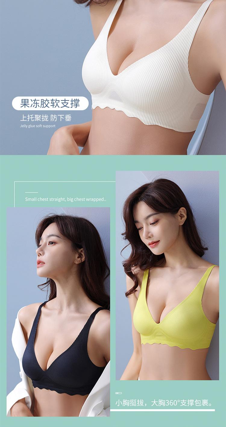 Lencería sexy sin costuras con tiras de gelatina de soporte suave para mujer, sujetador push-up de pecho pequeño con copa fija y pecho grande, sin aros