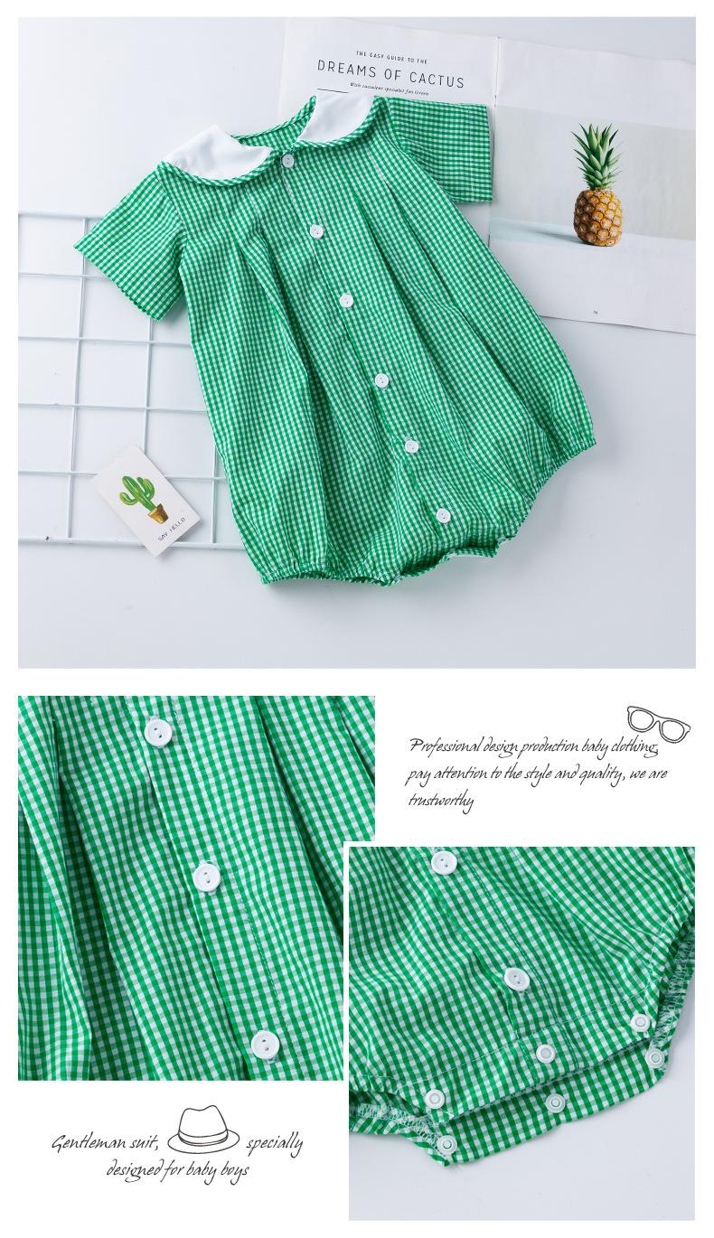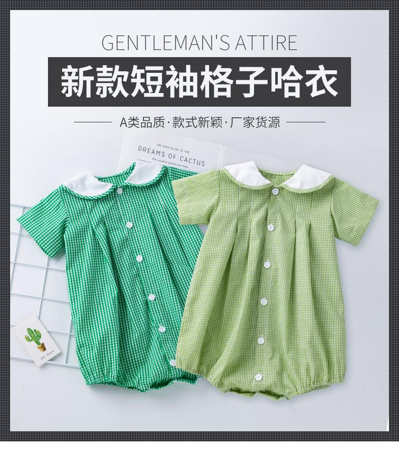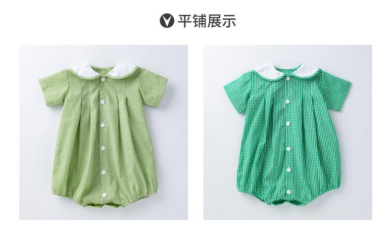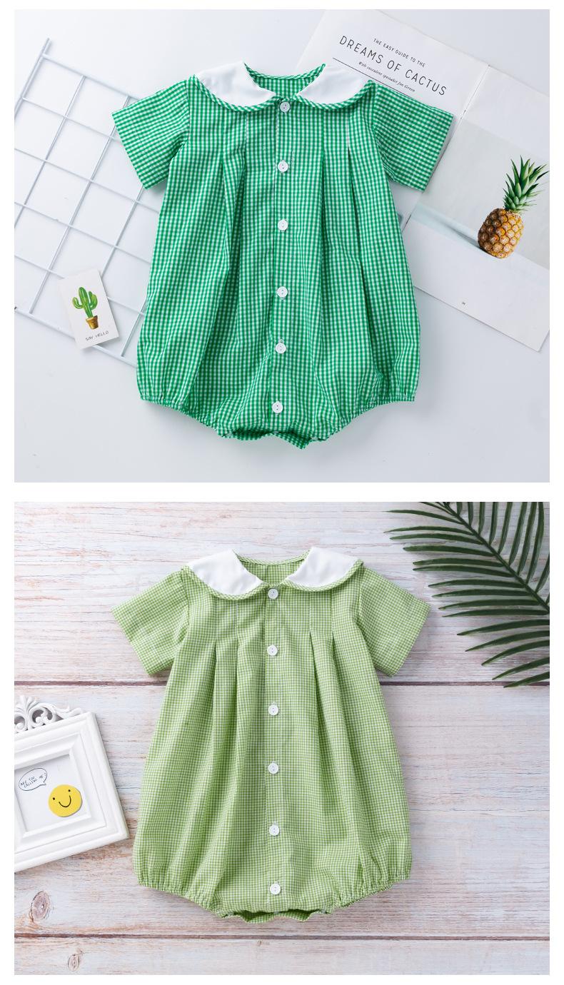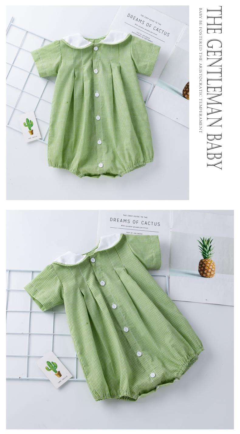 Camisa a cuadros de manga corta de verano para niña, ropa Ha, cuello de muñeca verde claro, ropa de escalada para bebé, ropa bonita y de moda para el hogar