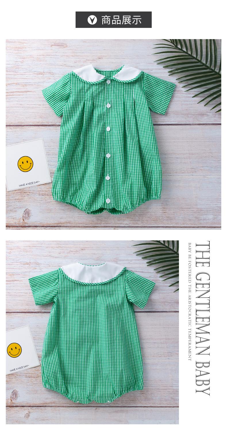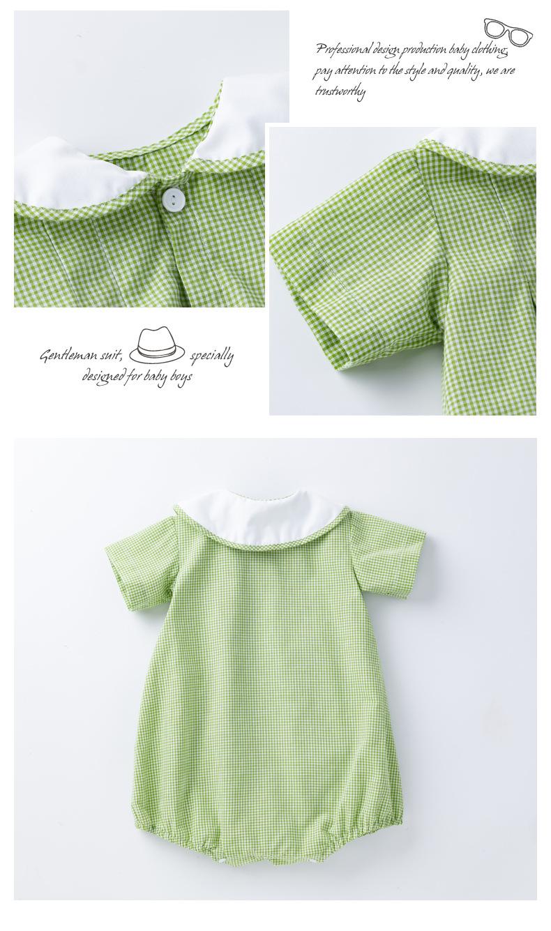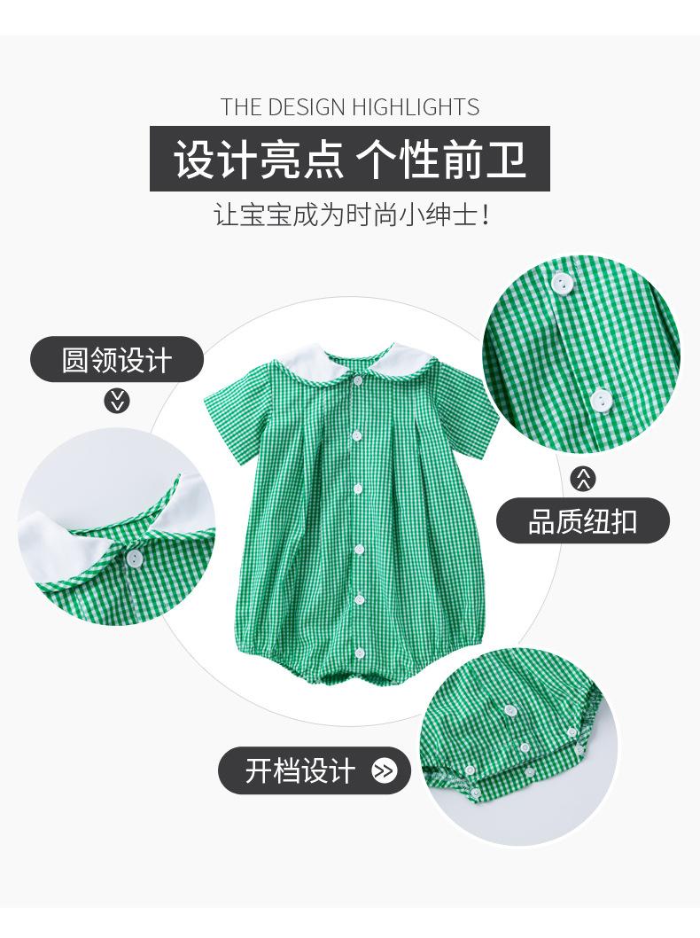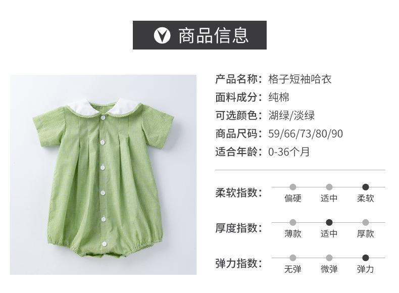 Camisa a cuadros de manga corta de verano para niña, ropa Ha, cuello de muñeca verde claro, ropa de escalada para bebé, ropa bonita y de moda para el hogar