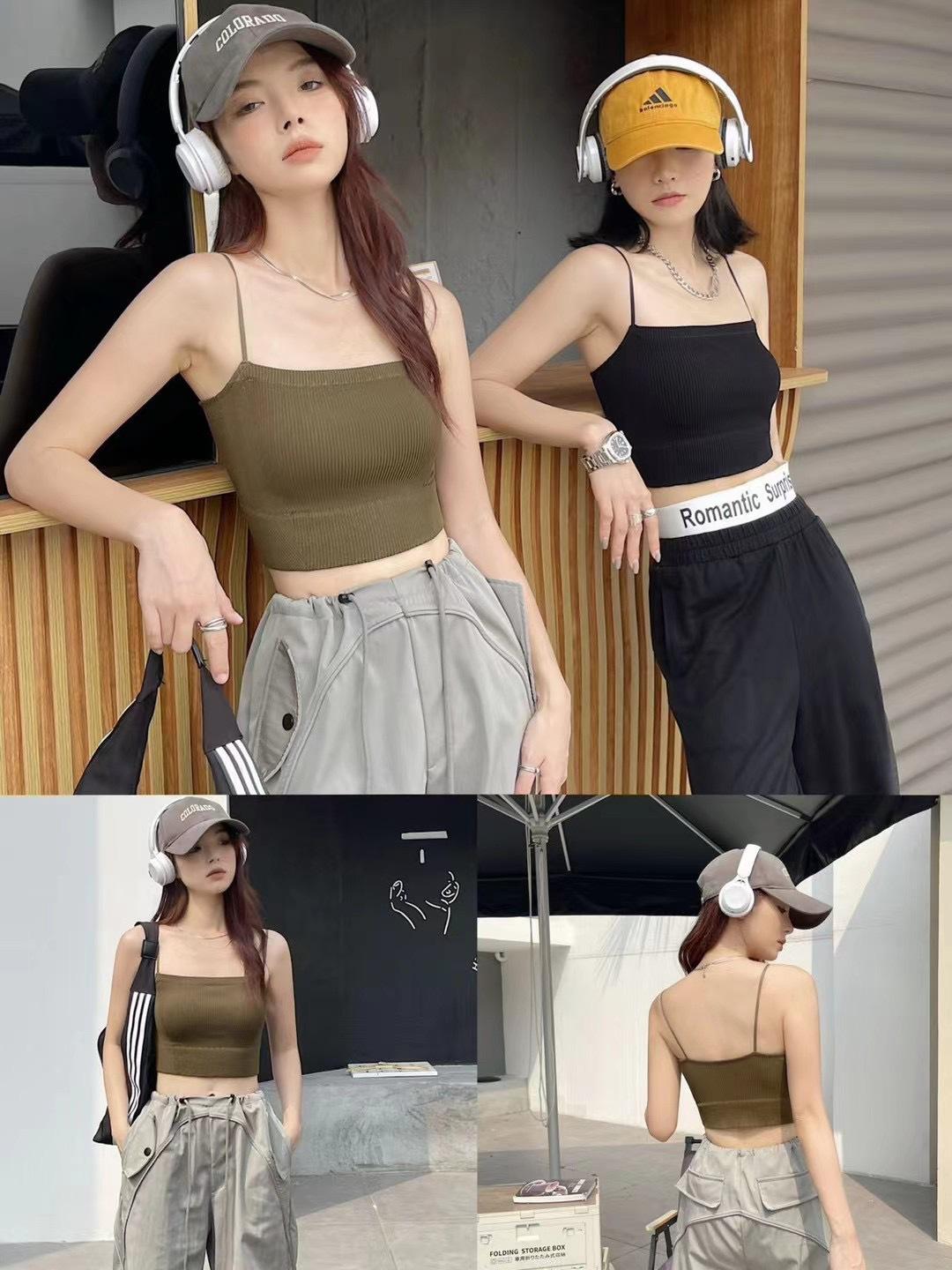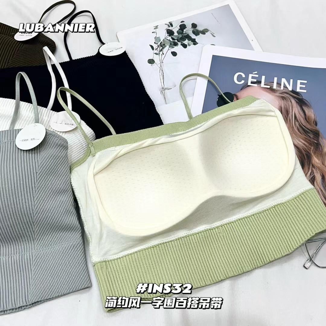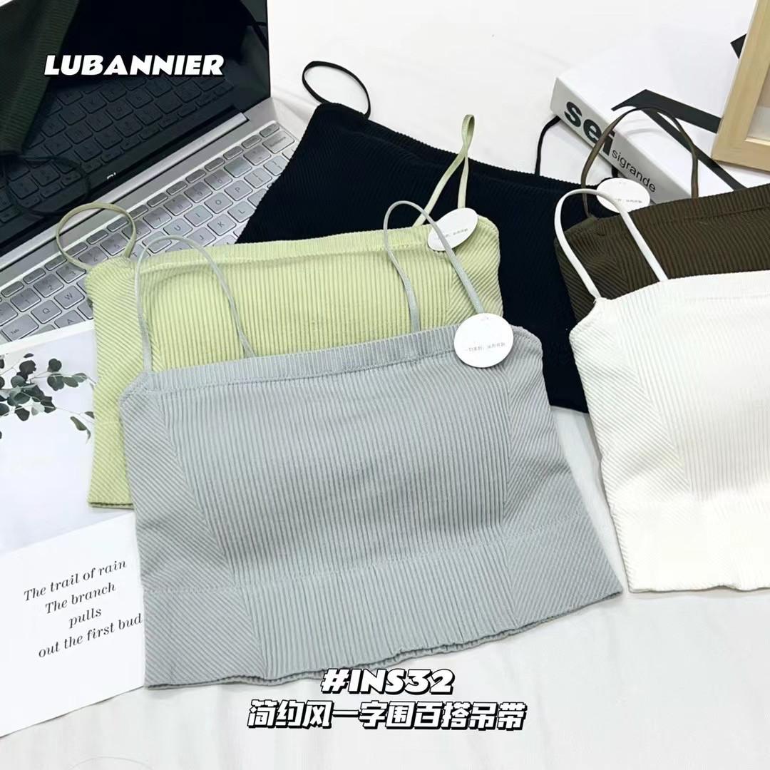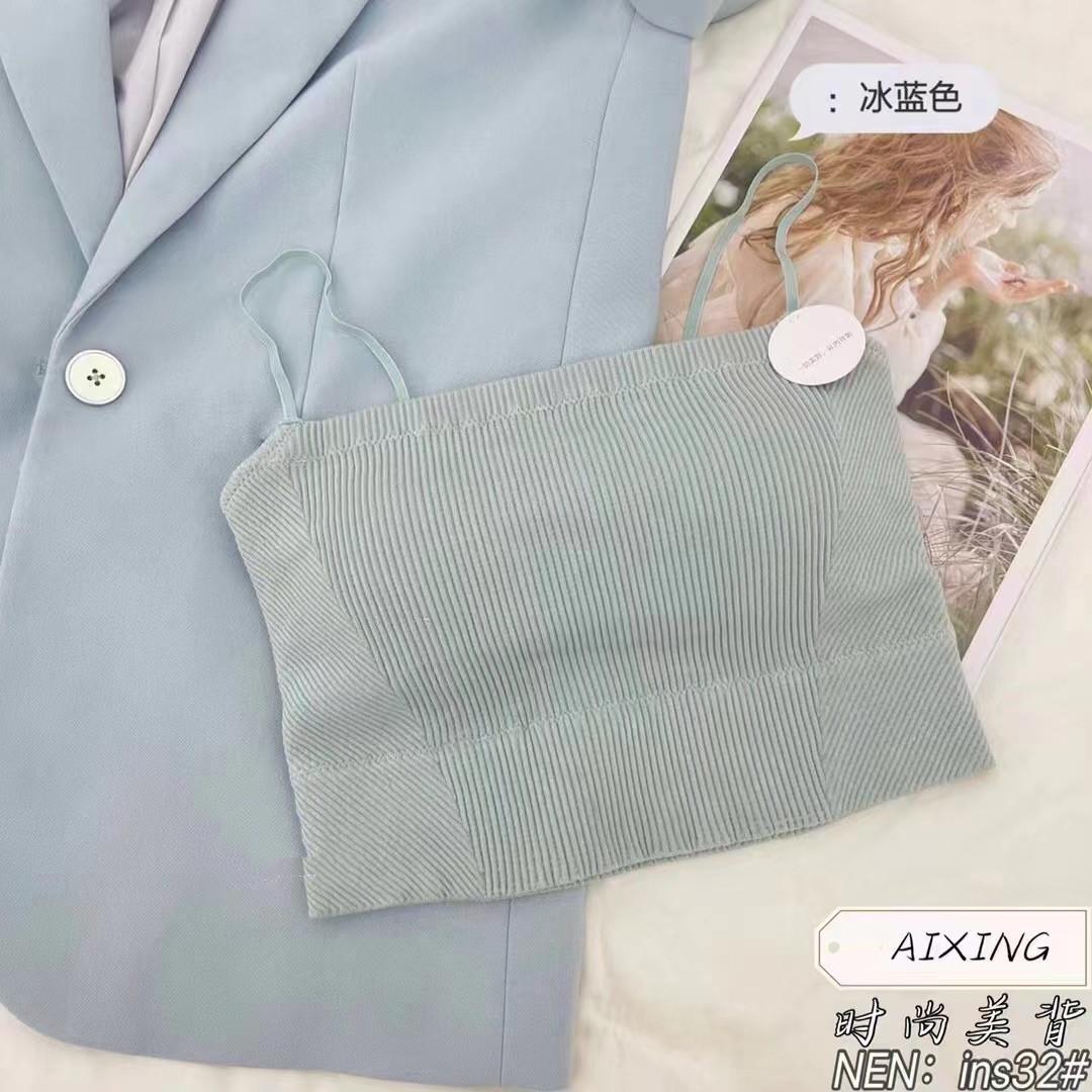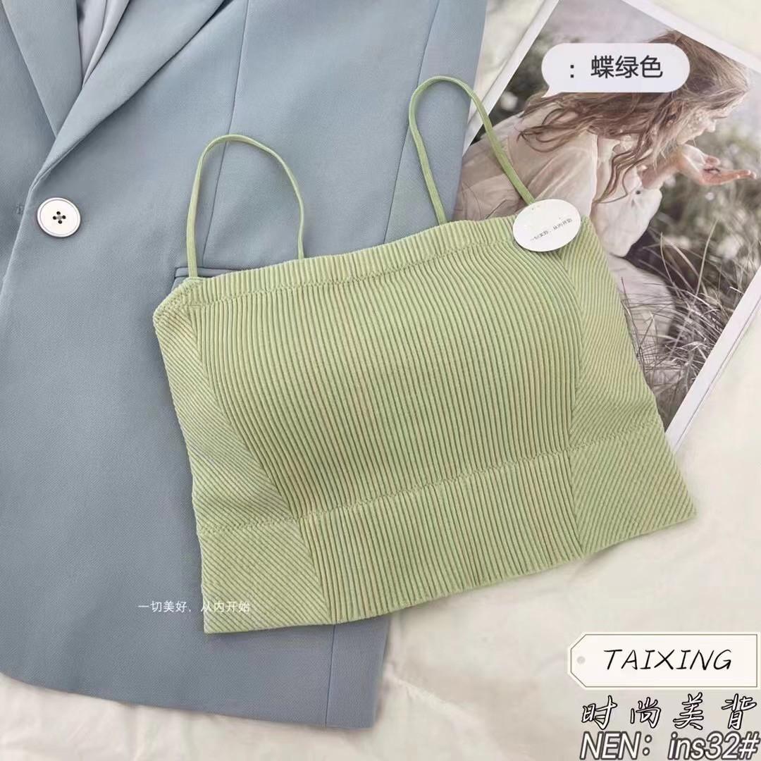 Top corto de tubo sin costuras de una línea con cuello halter, diseño sexy de espalda hermosa, camisola con almohadillas para el busto, versátil top básico para mujer