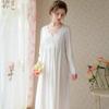 Pijama Nuevo para Primavera y Otoño, de Manga Larga, Estilo Palacio Princesa Retro Francés Cuello en V Suelto Vestido Largo, Camisón Delgado de Encaje para Niñas
