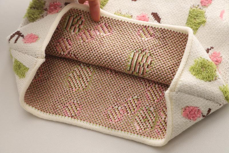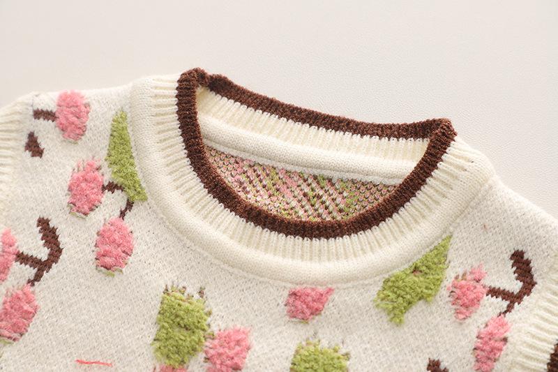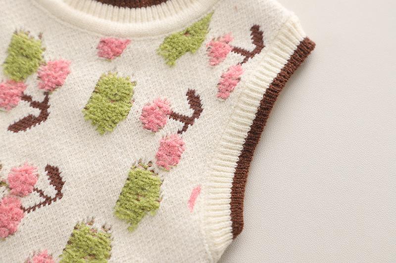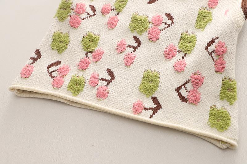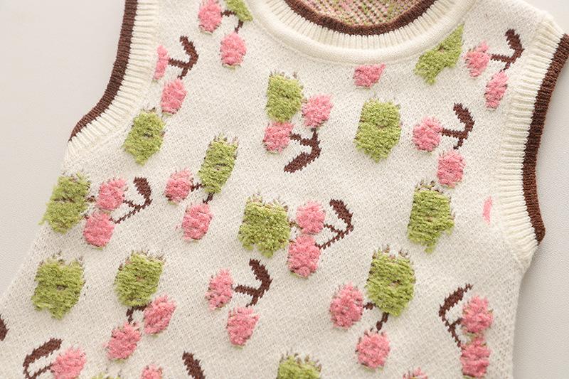Pink full printed Cherry sweater vest three-piece set, Blue full printed Cherry sweater vest three-piece set