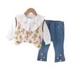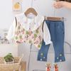 Ropa para niños traje de primavera para niñas 2024 primavera nuevo chaleco de suéter de dibujos animados para bebés niñas conjunto de tres piezas entrega de una pieza